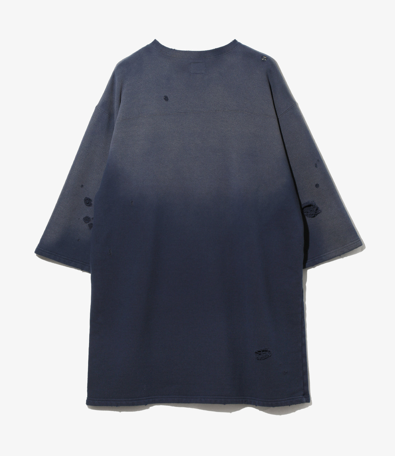 NEPENTHES WOMAN各店のみで展開される限定コレクションが登場。ワイドフィットのシルエットと5分袖のバランスが特徴的なホッケーシャツドレスです。ヴィンテージスウェットのようなリアルなダメージや色褪せ加工を施したスウェット生地で制作しました。フロント中央に大胆にプリントされたパピヨンが目を惹きます。一枚ではもちろん、さまざまなアイテムと合わせてレイヤードスタイルも楽しめる一着です。