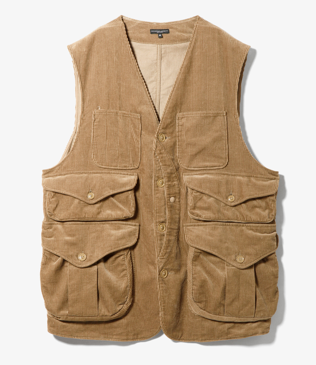 多数のポケットが特徴的なハンティングジャケット。名前の通り狩猟用としてつくられたジャケットで、フロントのゲームポケットや両サイドの立体的なフラップポケットがクラシックな印象です。ロングシルエットでアウターのレイヤードも楽しめる一着。