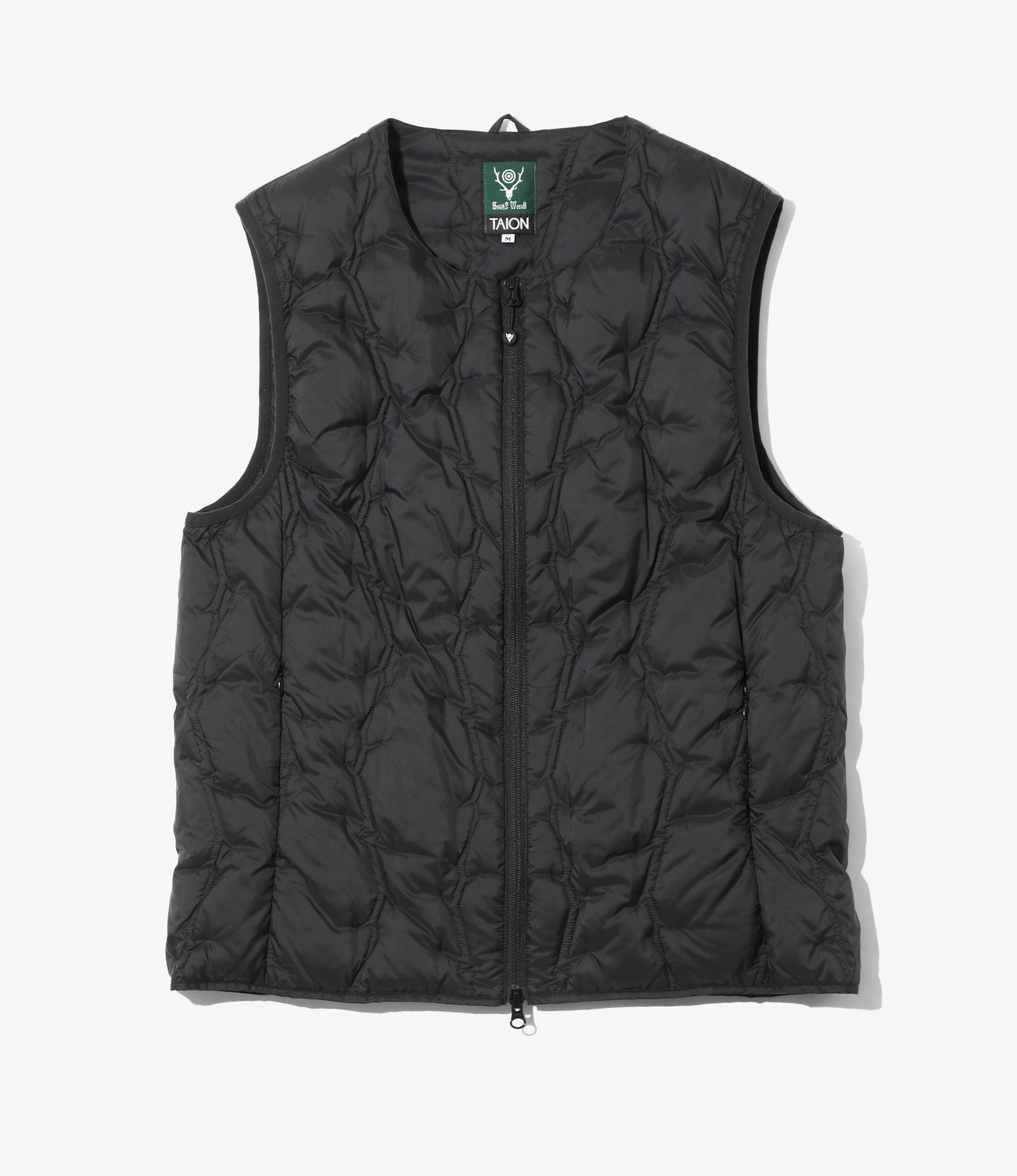 また、リサイズすることでゆとりのあるシルエットを実現し、全て〈SOUTH2 WEST8〉限定のサイズでご用意。インナーダウンとしてはもちろん、アウターとしても活躍する高いファッション性が特徴です。