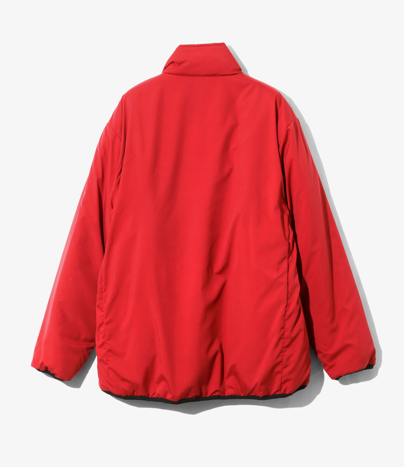 首元をしっかりとカバーするスタンドカラーと、ボリューム感のあるたっぷりな中綿が生み出す柔らかなシルエットが特徴の一着。シェルに使用されているソフトな肌触りのピーチスキン素材も、アイテムの雰囲気に非常にマッチしています。着心地は非常に軽く、長時間の着用でもストレスを感じさせません。今季はレッドとブラックの2色展開となっています。