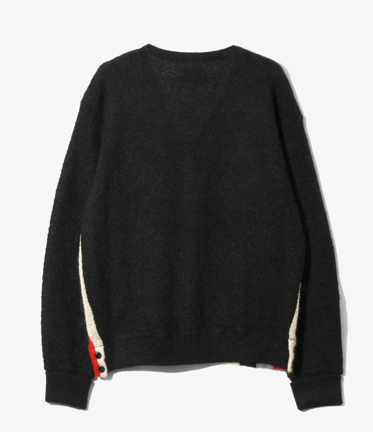 ややコンパクトなサイズ感に深めのVネック、サイドスリットに配されたボタンなど、随所に特徴的なディテールを備えたニットカーディガン。素材には、モヘア混素材をクレープ織りで仕上げたファブリックを使用しました。毛足を抑えたニット地は春夏らしい清涼感があり、素材から生まれる独特のシボがナチュラルな雰囲気です。3種類のストライプのバリエーションでリリースされています。