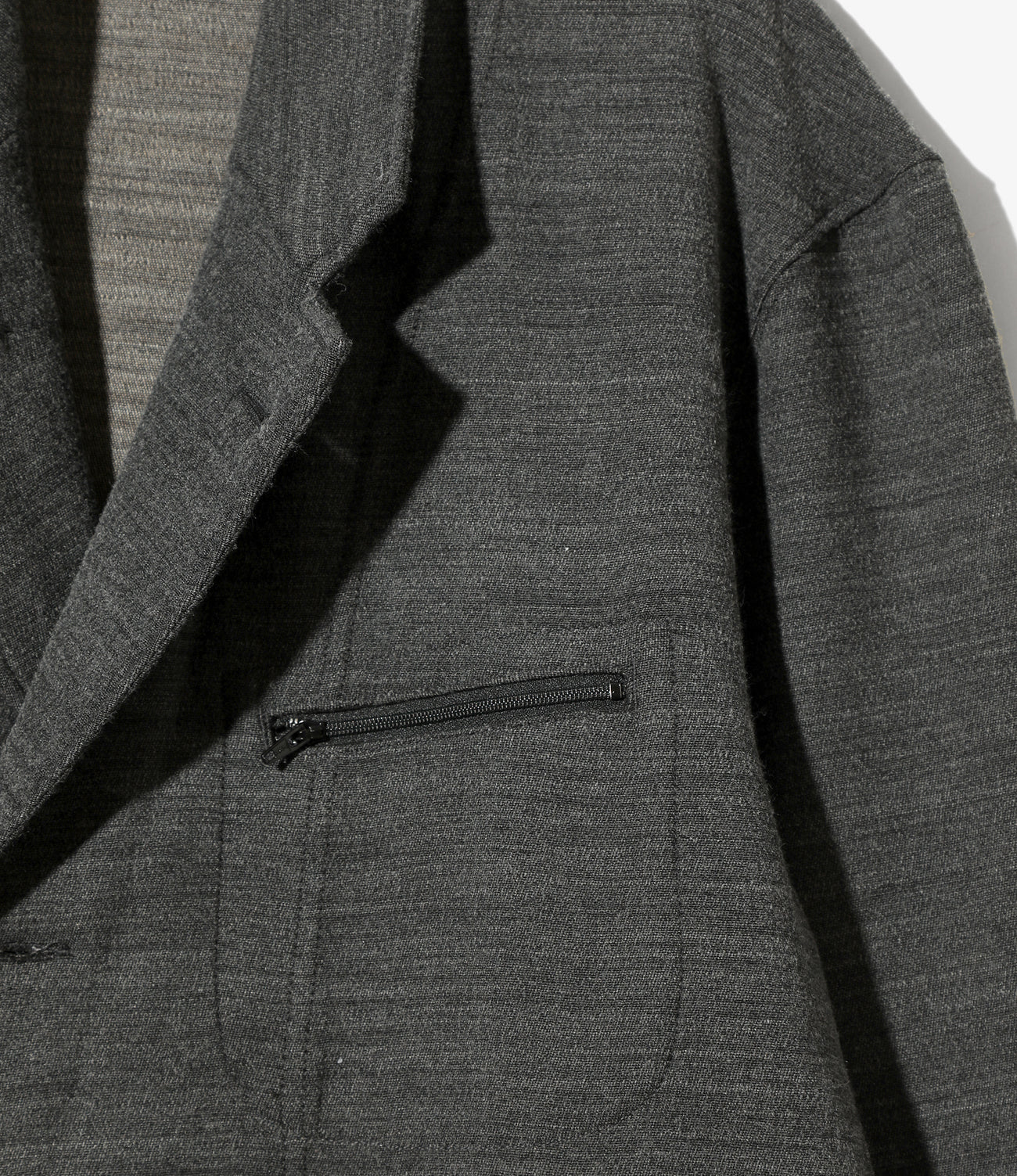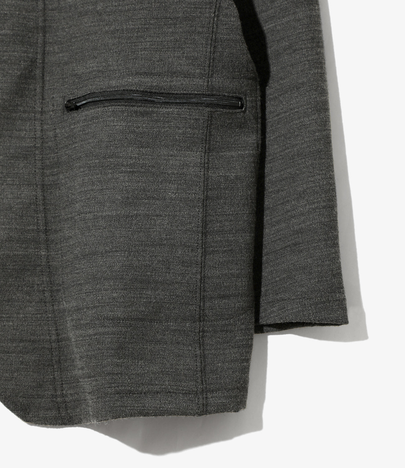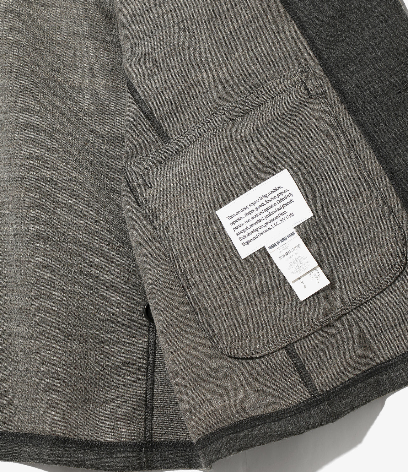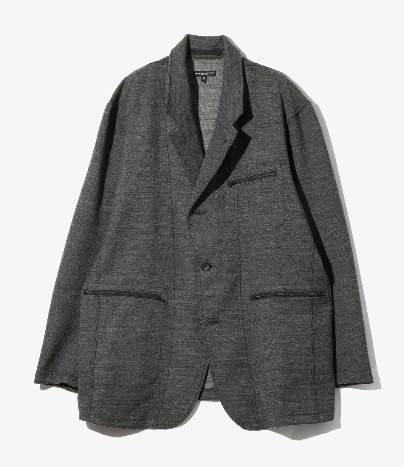 テーラードジャケットのデザインをベースに、リラックスした着心地を追求したニットレジャージャケット。クラシックなラペルに対し、ジップ仕様の3つポケット、程よくゆとりのあるシルエットにカフスボタンを排した仕立てなど、ラフに活躍する一着に仕上がりました。クラシックなディテールを踏襲しながらも、〈ENGINEERED GARMENTS〉らしさが詰まったハイブリッドなデザインです。