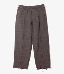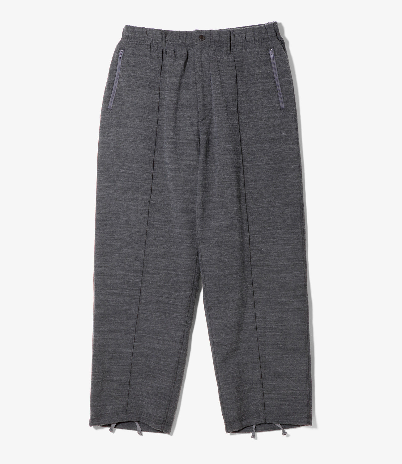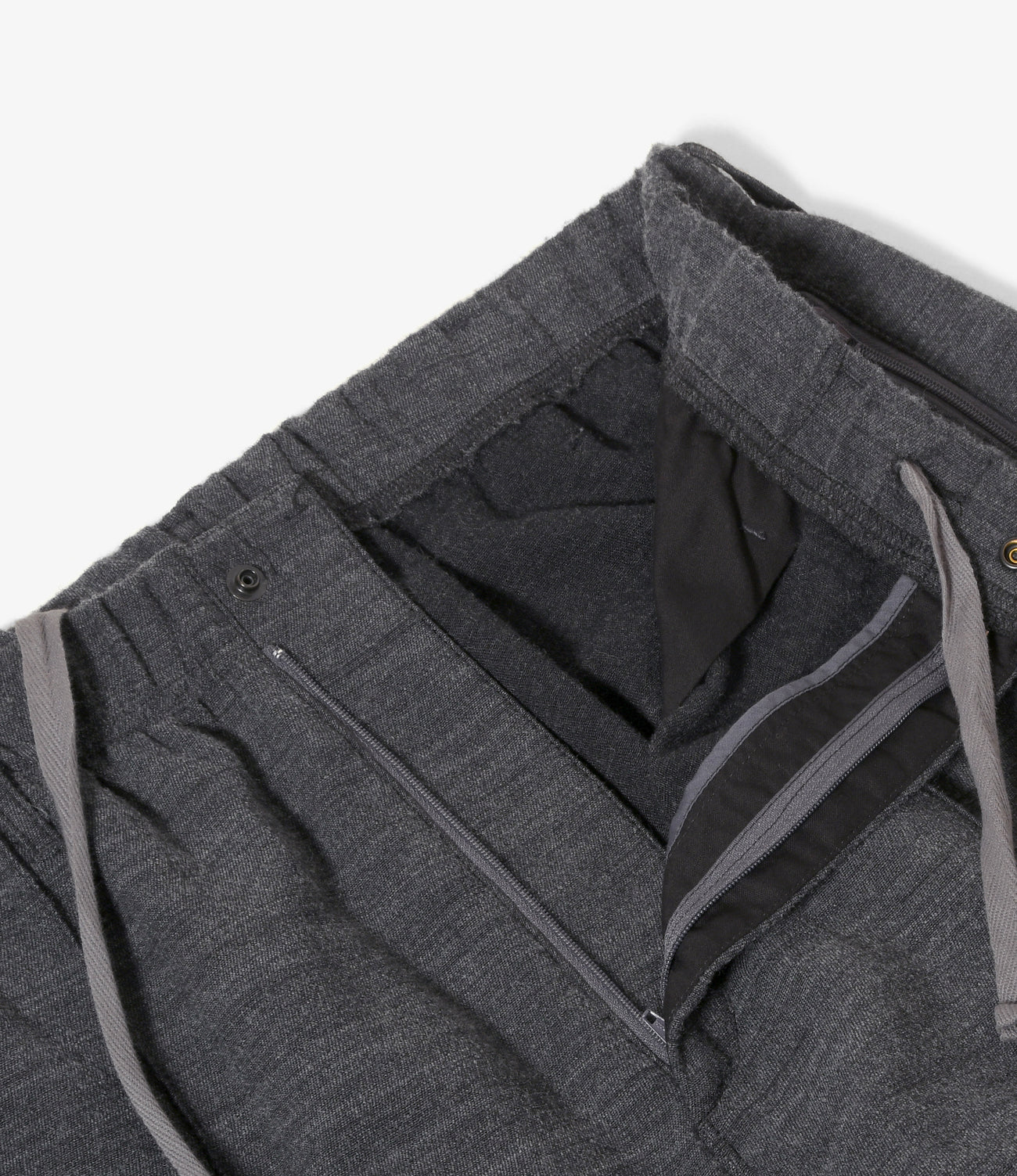 ストリング仕様のウエスト、ワイドシルエット、スポーティなジップポケットなど、リラックス感のある力の抜けたデザインが特徴的なジョグパンツ。裾はドローコードで調整が可能です。全体的にカジュアルな雰囲気が漂う一本ですが、両脚にセンターシームが施されることで、どこかスタイリッシュな表情も引き出されています。