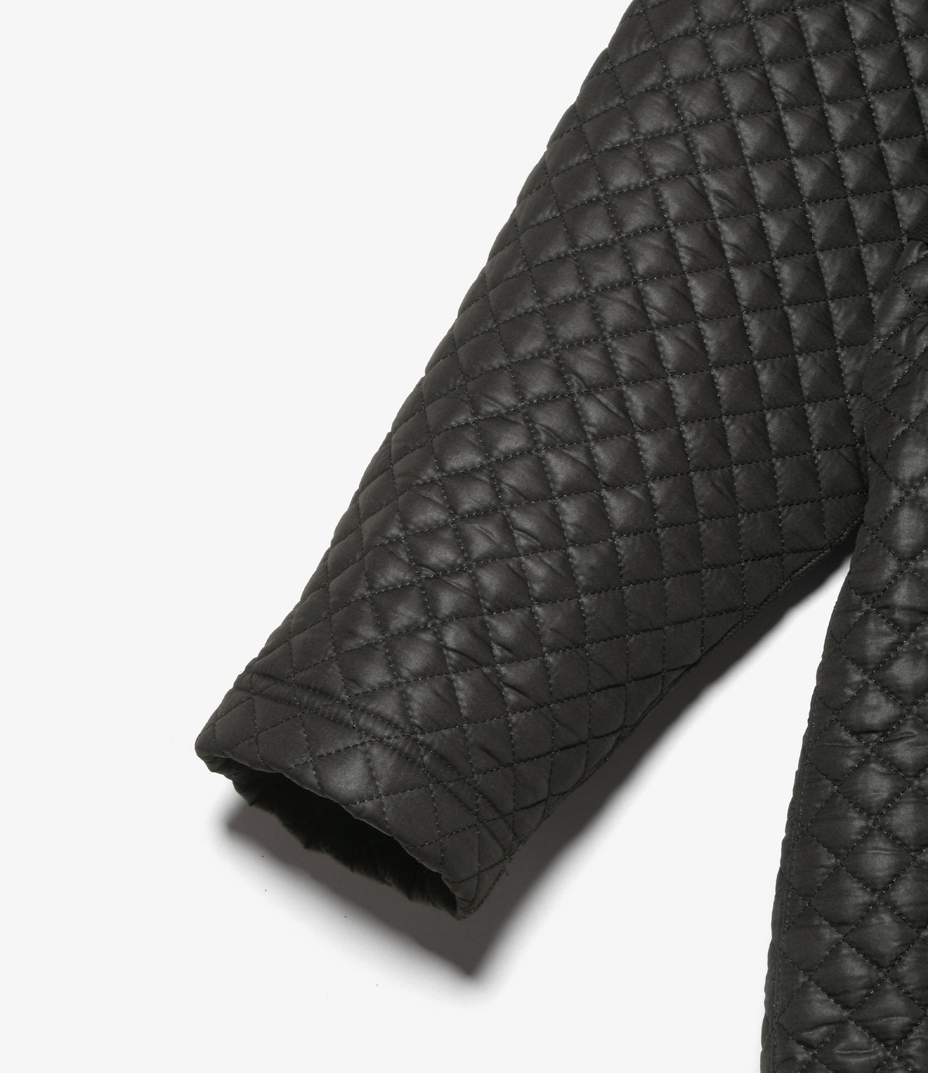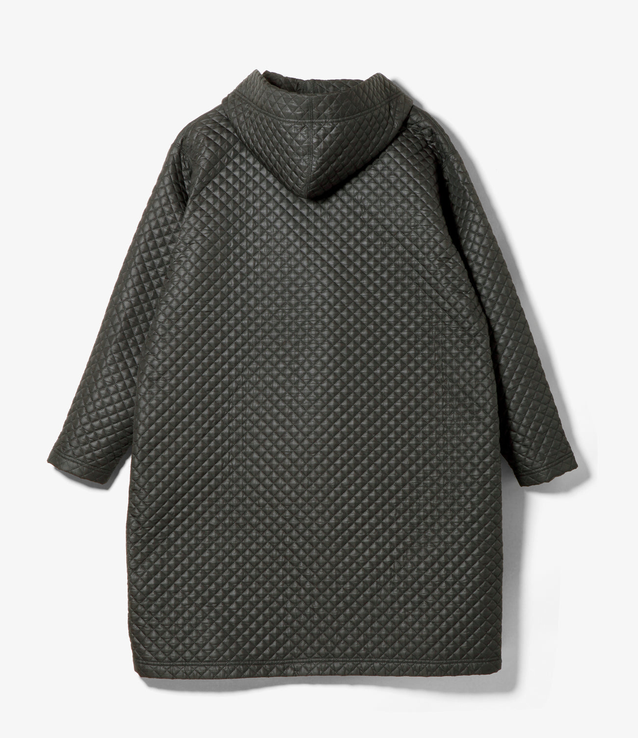 今シーズン〈ENGINNERED GARMENTS〉のルックブックでも多数登場する、リラックス感漂うニットローブ。頭までカバーできるフーディ型で、大きく重なるフロントはサイドに施された紐で留められる仕様となっています。唯一無二の立体的なシルエットは、ハリ感あるキルト素材ならではです。