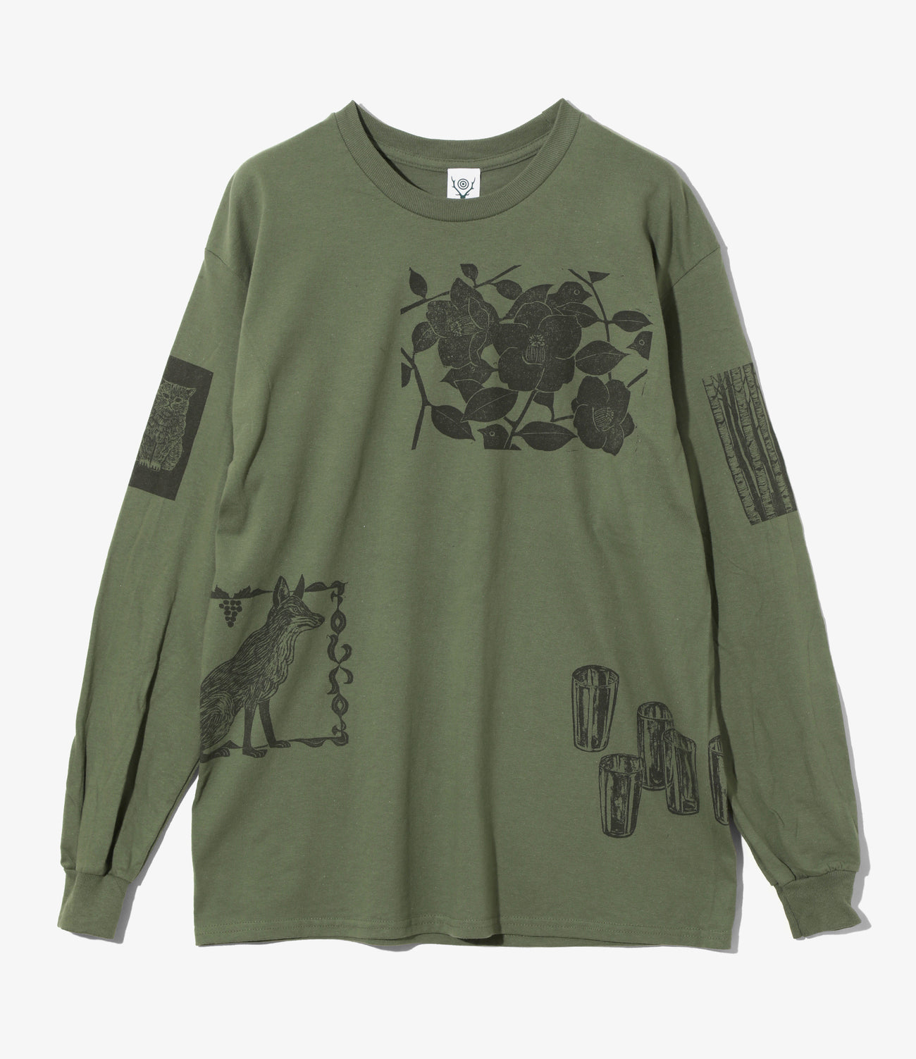北海道の版画家・北村太氏と〈SOUTH2 WEST8〉によるコラボレーション。北海道の動植物やトラウト、名山などを題材にした版画アートをモノクロプリントで表現し、ユーモラスで緻密な世界観を落とし込みました。北村氏の視点で再解釈されたオリジナルロゴもポイント。スウェットパーカ、ロングスリーブTシャツ、グロッサリーバッグなど全6型で展開されます。