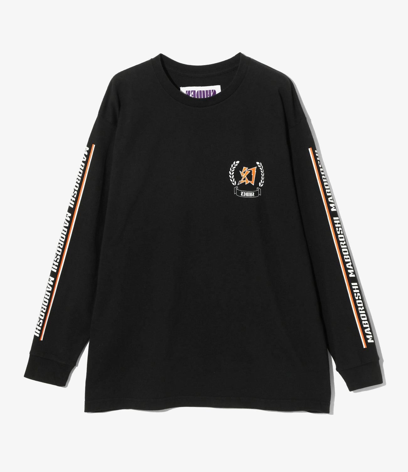 左胸とスリーブにプリントが施されたロングスリーブTシャツ。日本独自のバイクカルチャーを想起させる、ローレルや漢字のデザインが個性的な一着です。シルエットはゆとりのあるワイドなフィット。ローヤルとブラックの2色展開です。