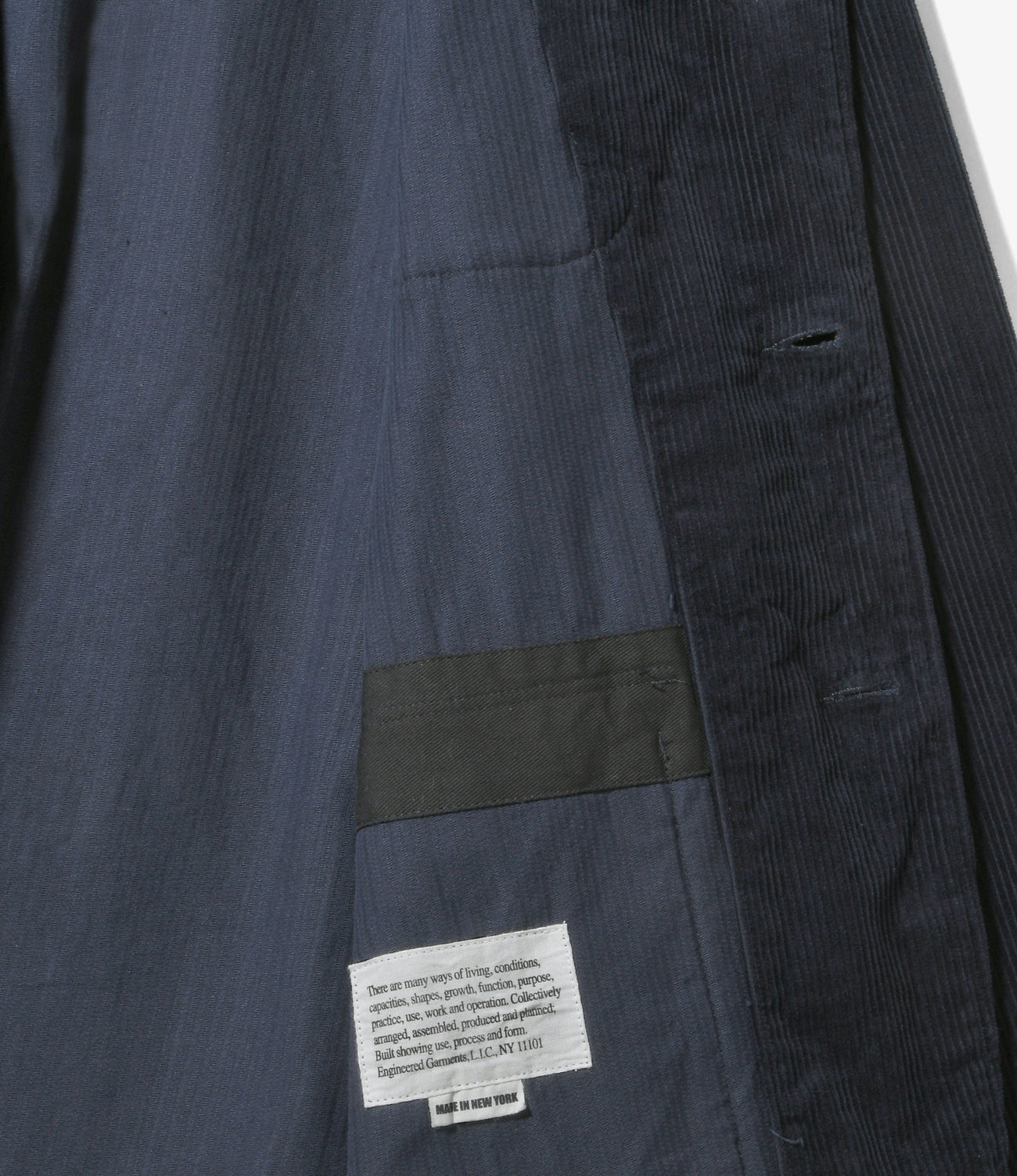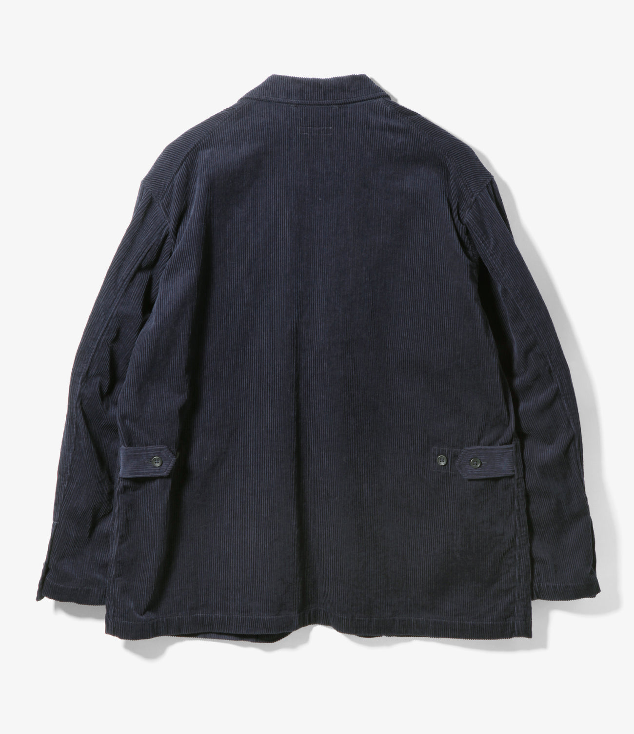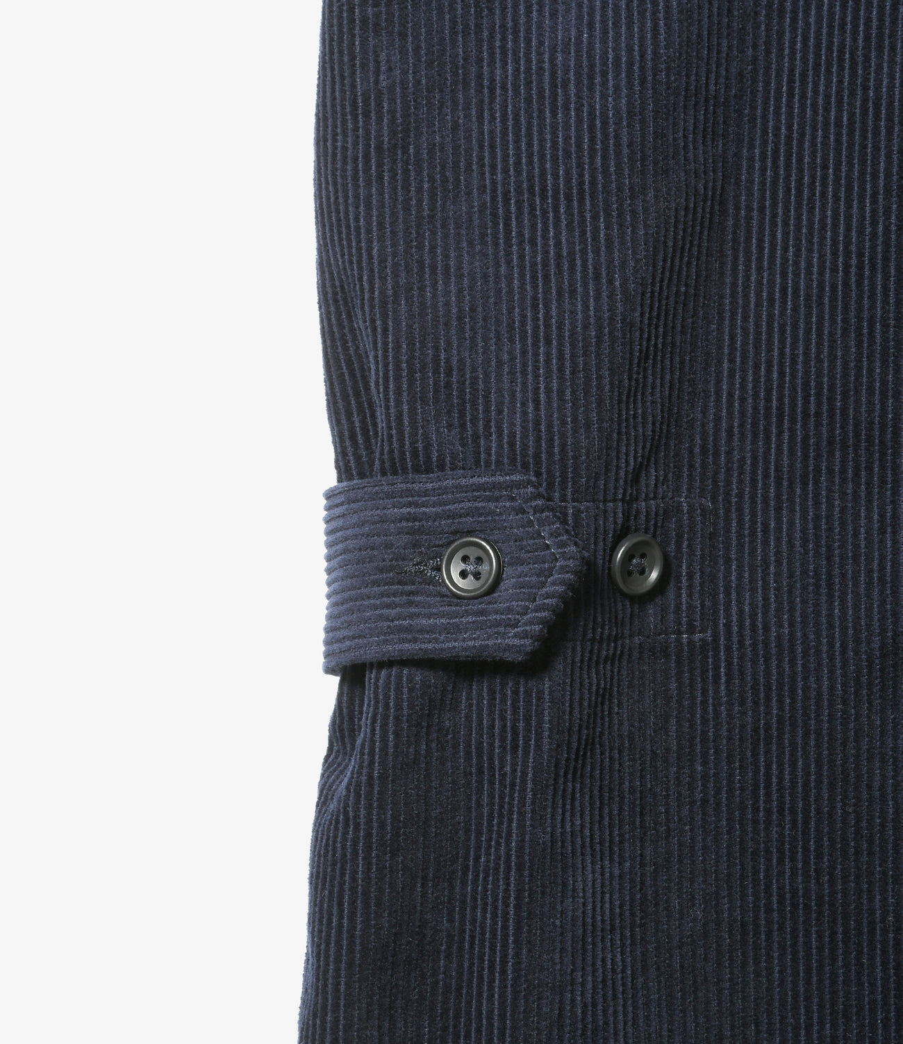 ジャケットよりもシャツに近い、シンプルで簡素な構造が力の抜けたカジュアルな雰囲気を感じさせる定番ジャケット。ゆとりを持たせたシルエットや、裏地を省いた軽い仕立てによるライトさが最大の魅力です。8Wと通常より太めの畝のコーデュロイがカジュアルでデイリーユースな一着です。