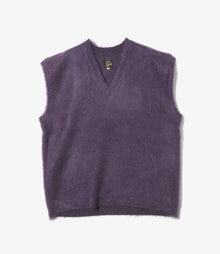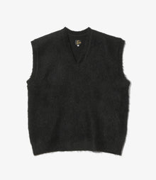 人気のモヘアニットから今季新しくベストがリリースされました。やや肩幅が広いVネックのニットベストは、インナー次第で様々なレイヤードを楽しめます。毛足の長いモヘア素材は美しい発色と独特の艶感が魅力で、加えて驚くほどの保温性の高さと、ストレスを感じさせない着心地の軽さも特徴です。