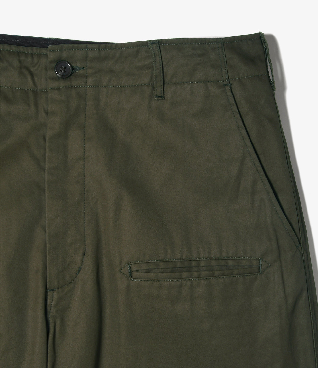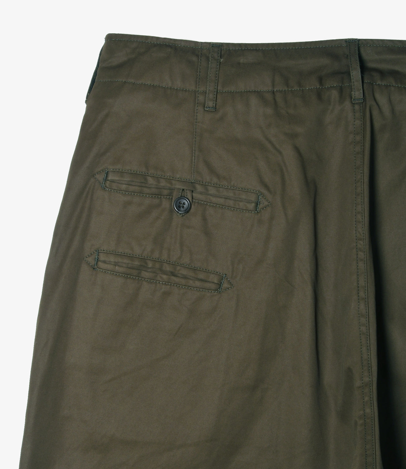 クラシックなミリタリーワークウェアをイメージし製作されたNNP PANT。ハイライズのウエストとストレートのシルエットが特徴的で幅広いスタイリングに合う一本。多数のポケットとウエストと裾にドローコードを配しています。高密度で織られたコットンを使用しており耐久性に優れています。