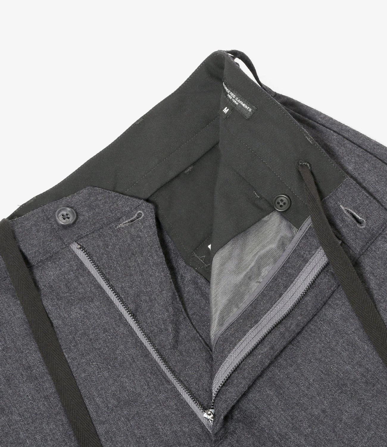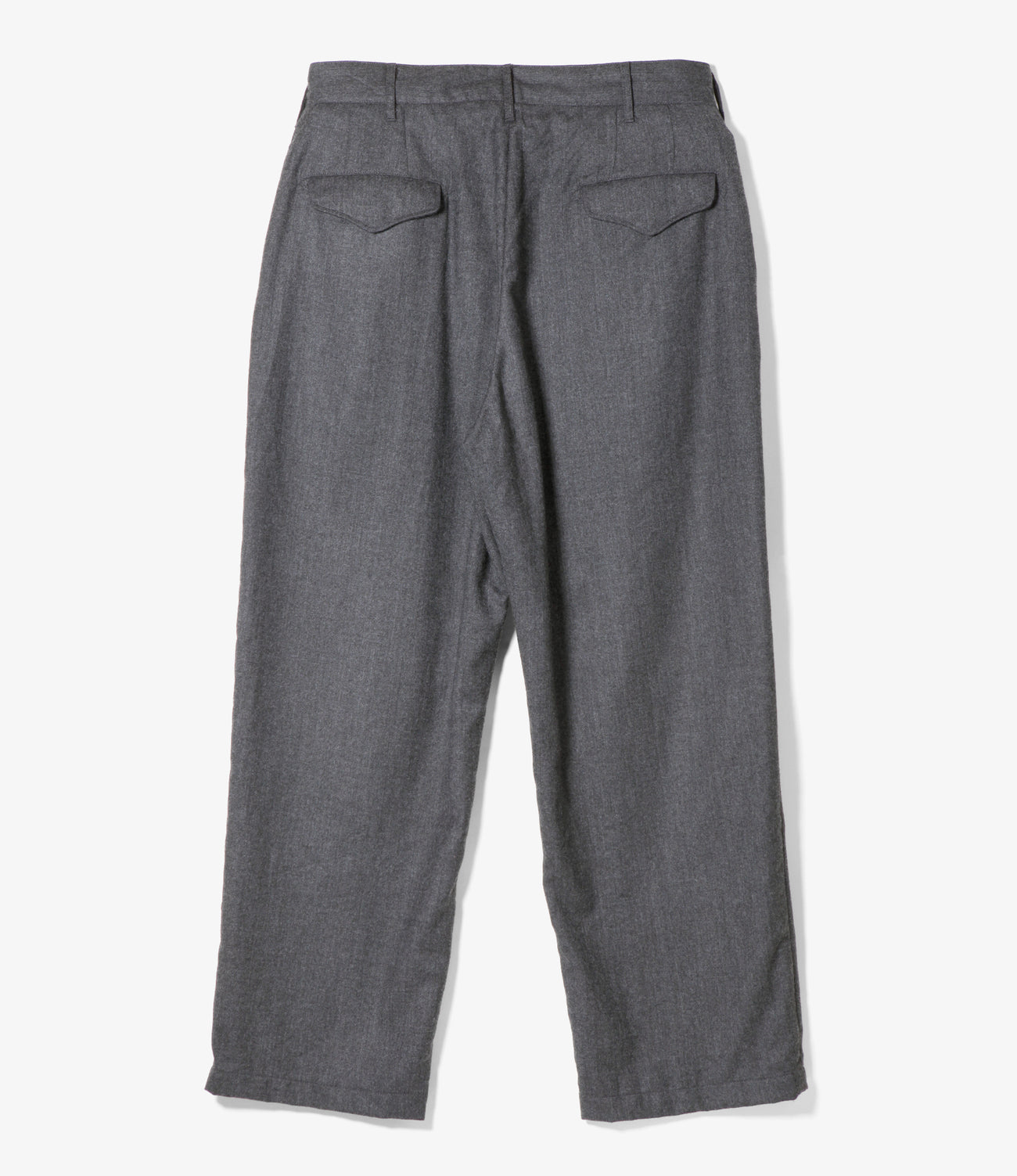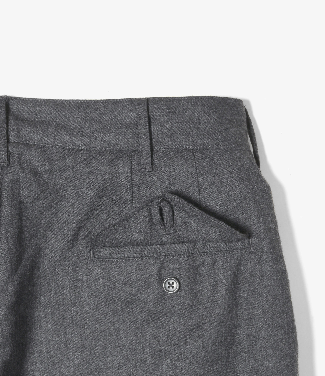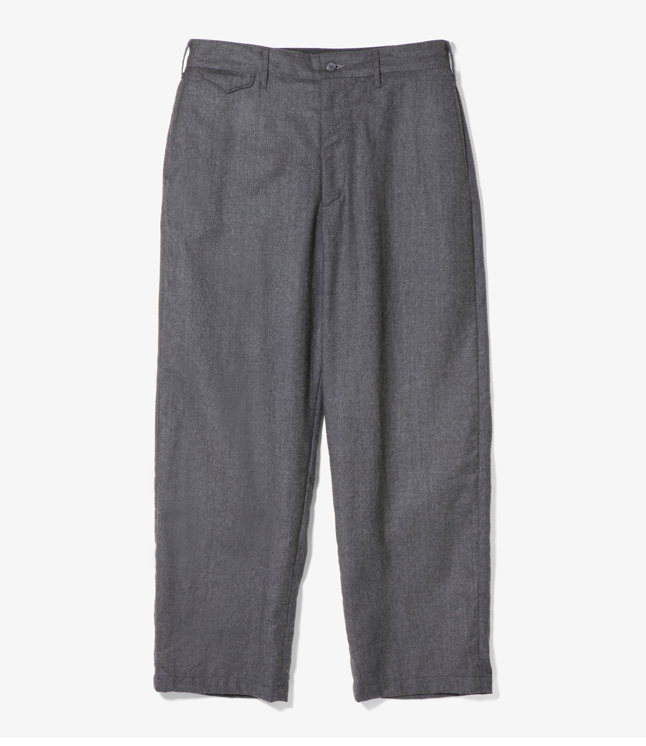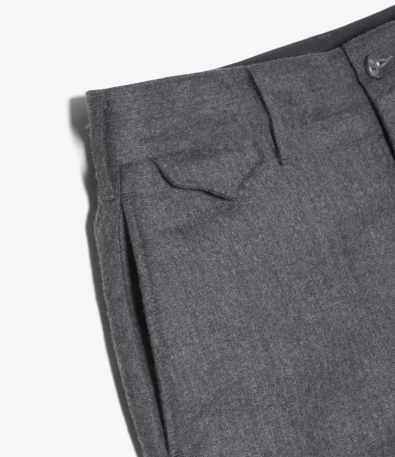 ディテールを抑えたシンプルなデザインと、テーパードの効いたややワイドなシルエットが特徴的なオフィサーパンツ。ベーシックなアイテムで、カジュアルからドレッシーなスタイルまで幅広くカバーする一本です。非常に滑らかで光沢感があるハイカウントウーステッドウールは、よりスタイリッシュで洗練された印象です。