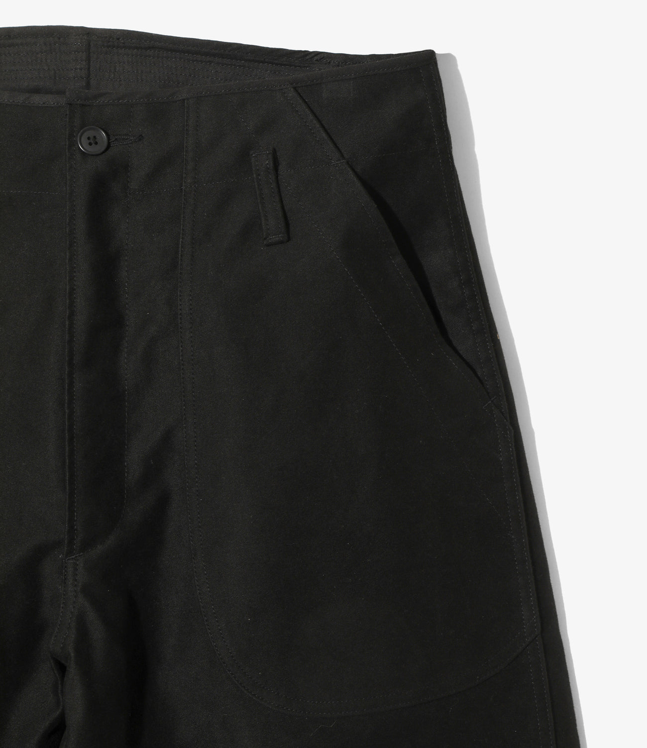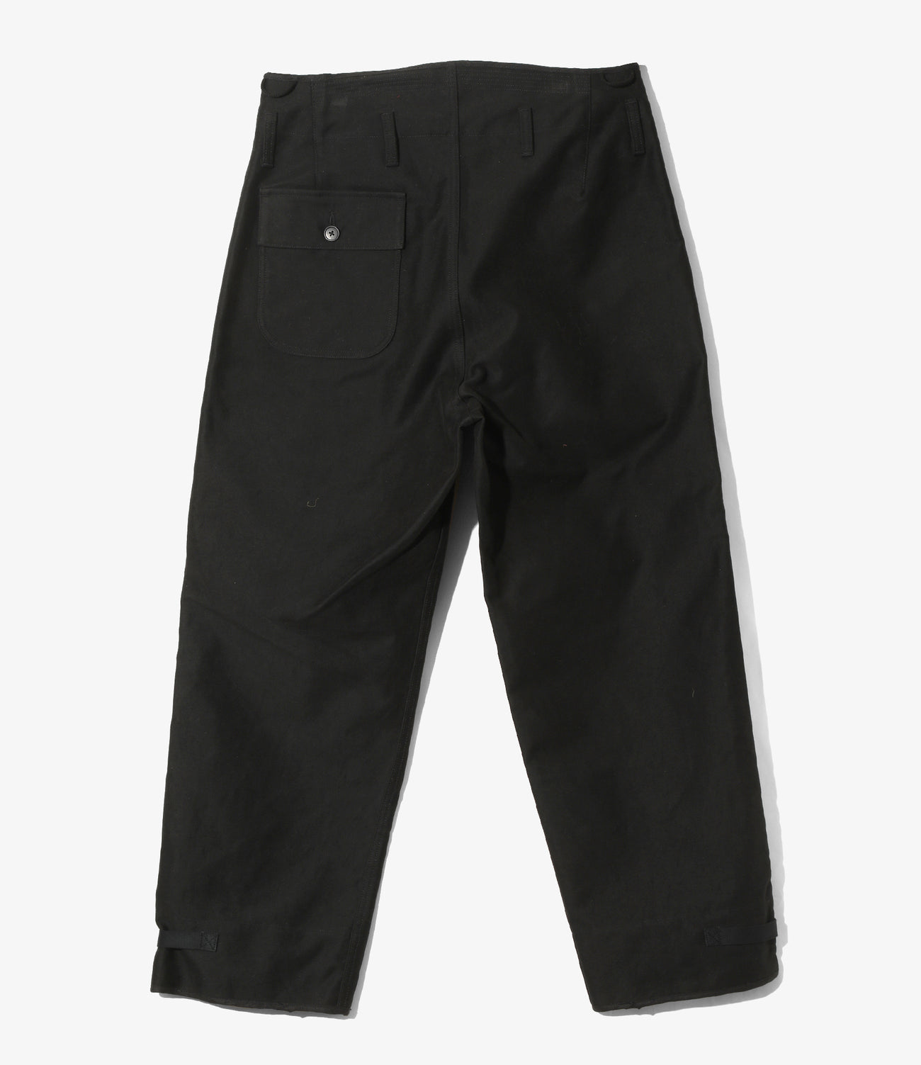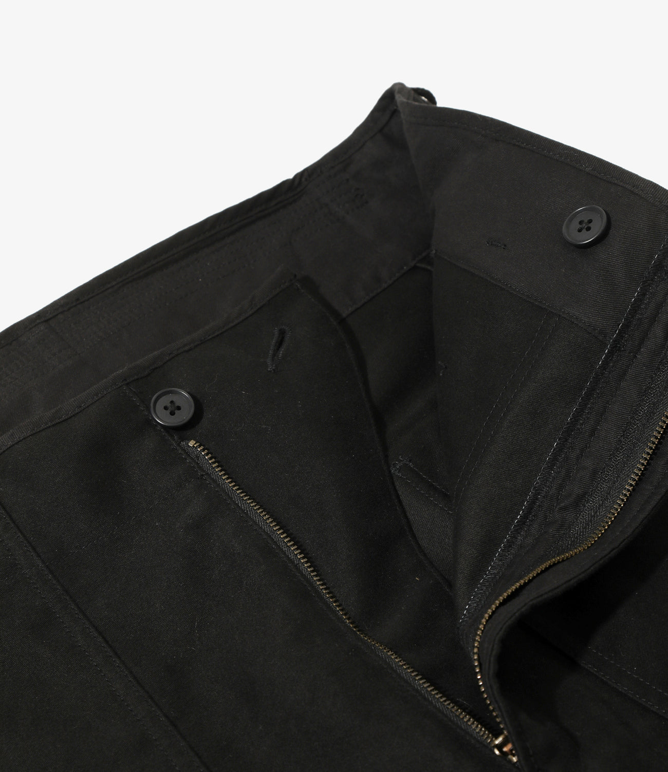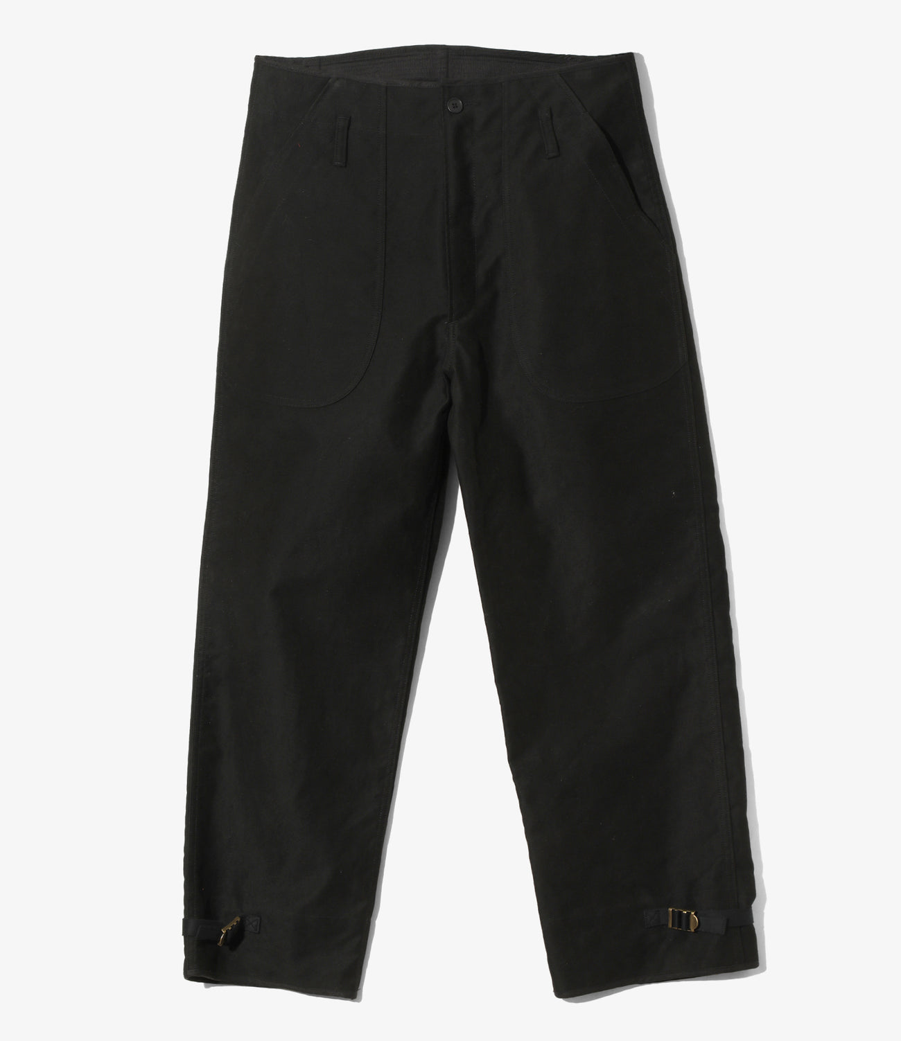 ミニタリーのディテールをベースに、モダンなシルエットへとアレンジしたオーバーパンツ。ボリュームのあるわたりから自然にテーパードするラインが特徴的で、裾に施されたバックストラップを絞ることでシルエットをアレンジすることが可能です。バックのフラップポケットやカーブを描くフロントポケットなど、さりげないディテールワークが際立つ一本に仕上がっています。しなやかなコットンモールスキン素材は、履き込むほどに豊かな味が生まれます。