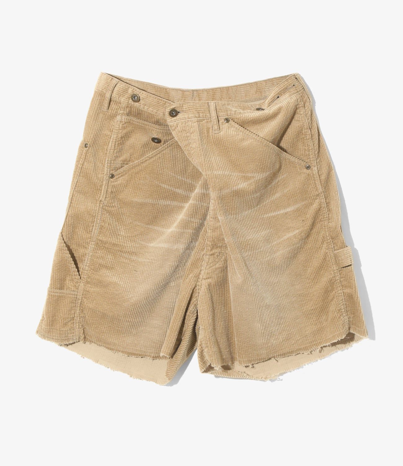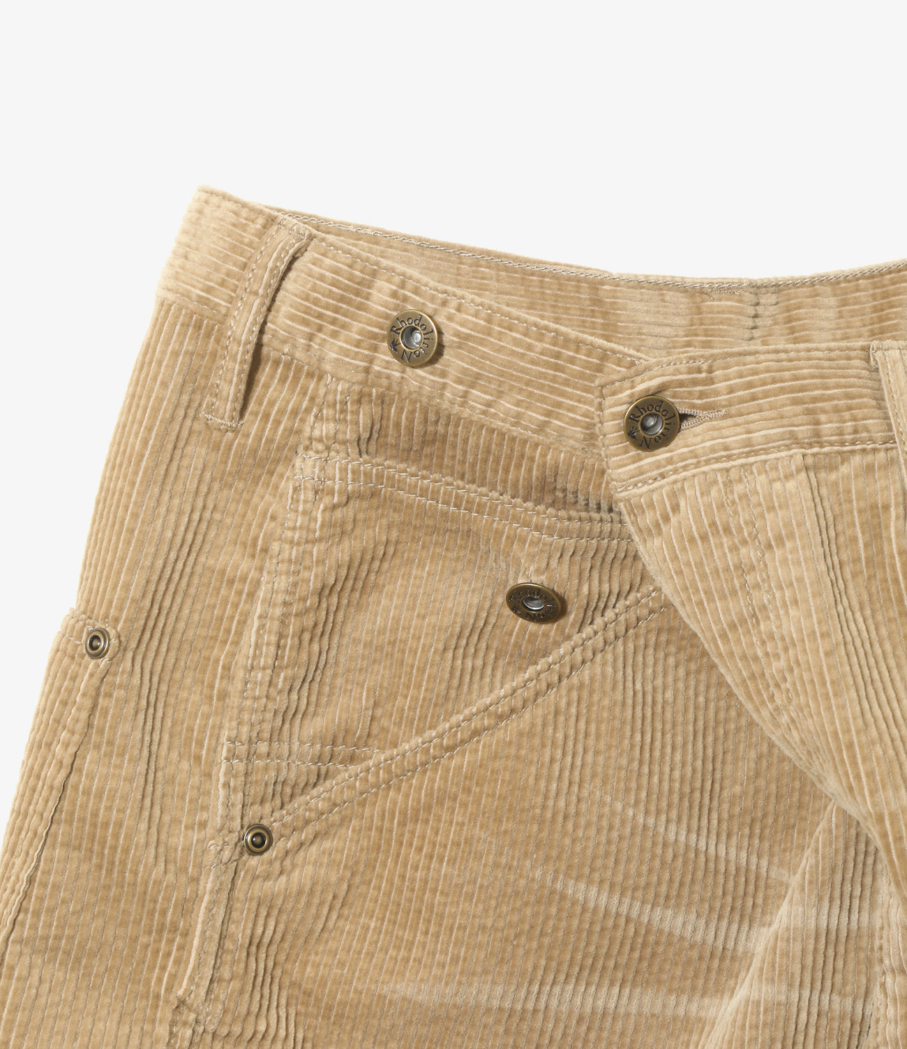 ロデオクラウンパンツから着想を得て<RHODOLIRION>らしいアレンジを施したヒュージ(ゆったりとした)パンツ。ベルトでギュっとマークしたり、タイパンツのように前身ごろを重ねるように留めて頂けたり、変幻自在です。経年変化のうちカットオフされたようなダメージ加工が施され、ヴィンテージ感やワークウェアのムードが漂います。素材はオーガニックコットンを使用した6Wのコーデュロイを採用しました。