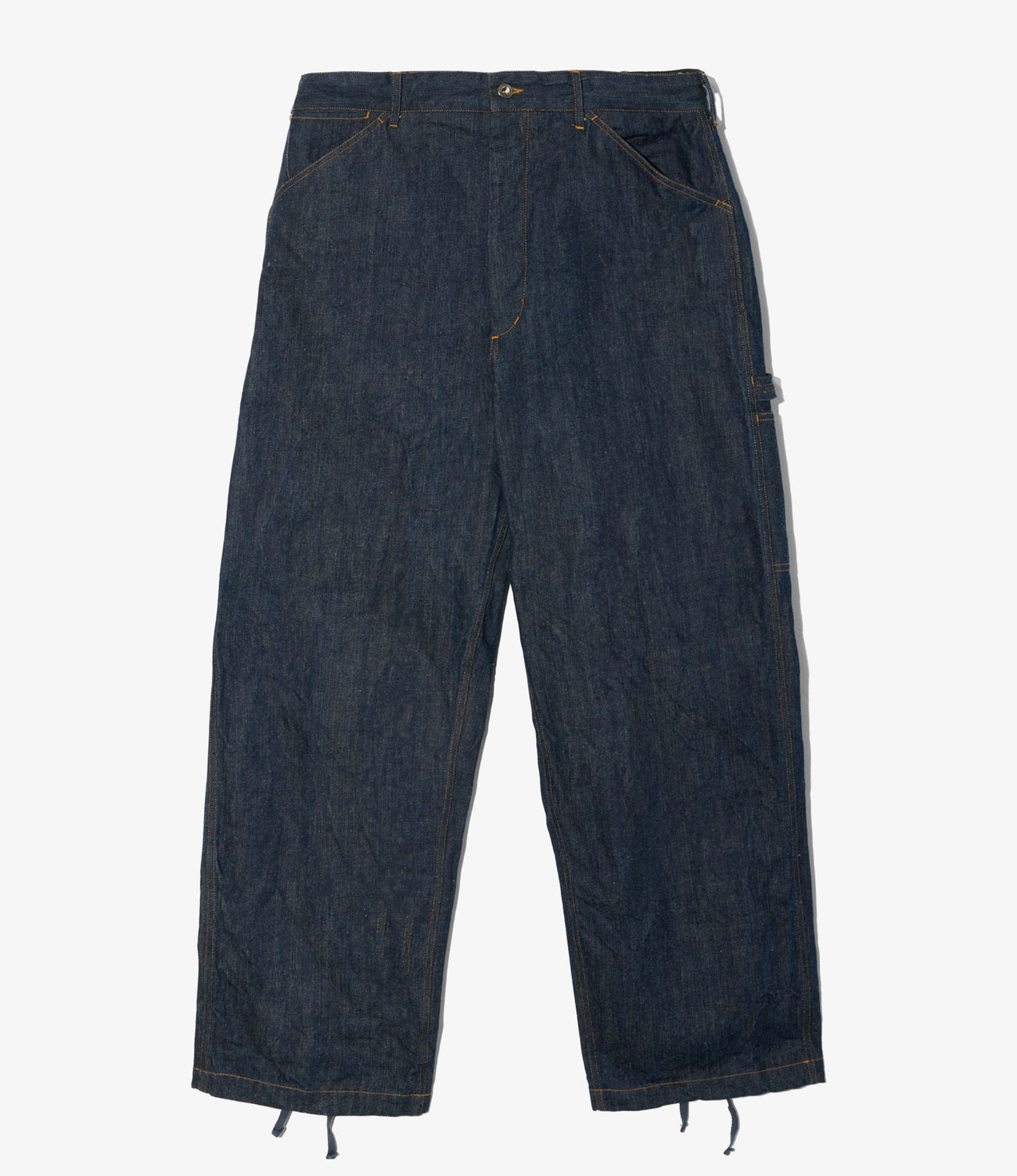 ワークパンツらしいワイドシルエットのシンプルなペインターパンツ。ハンマーループやスパナポケット、ドローコードを備えた王道のデザインとなっています。程よい厚みの12オンスのコーンデニム社製素材を使用。