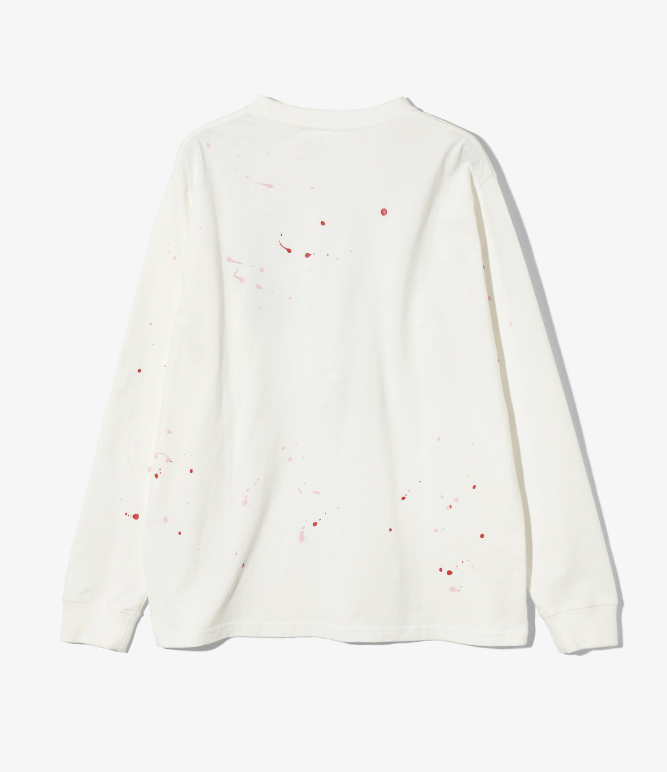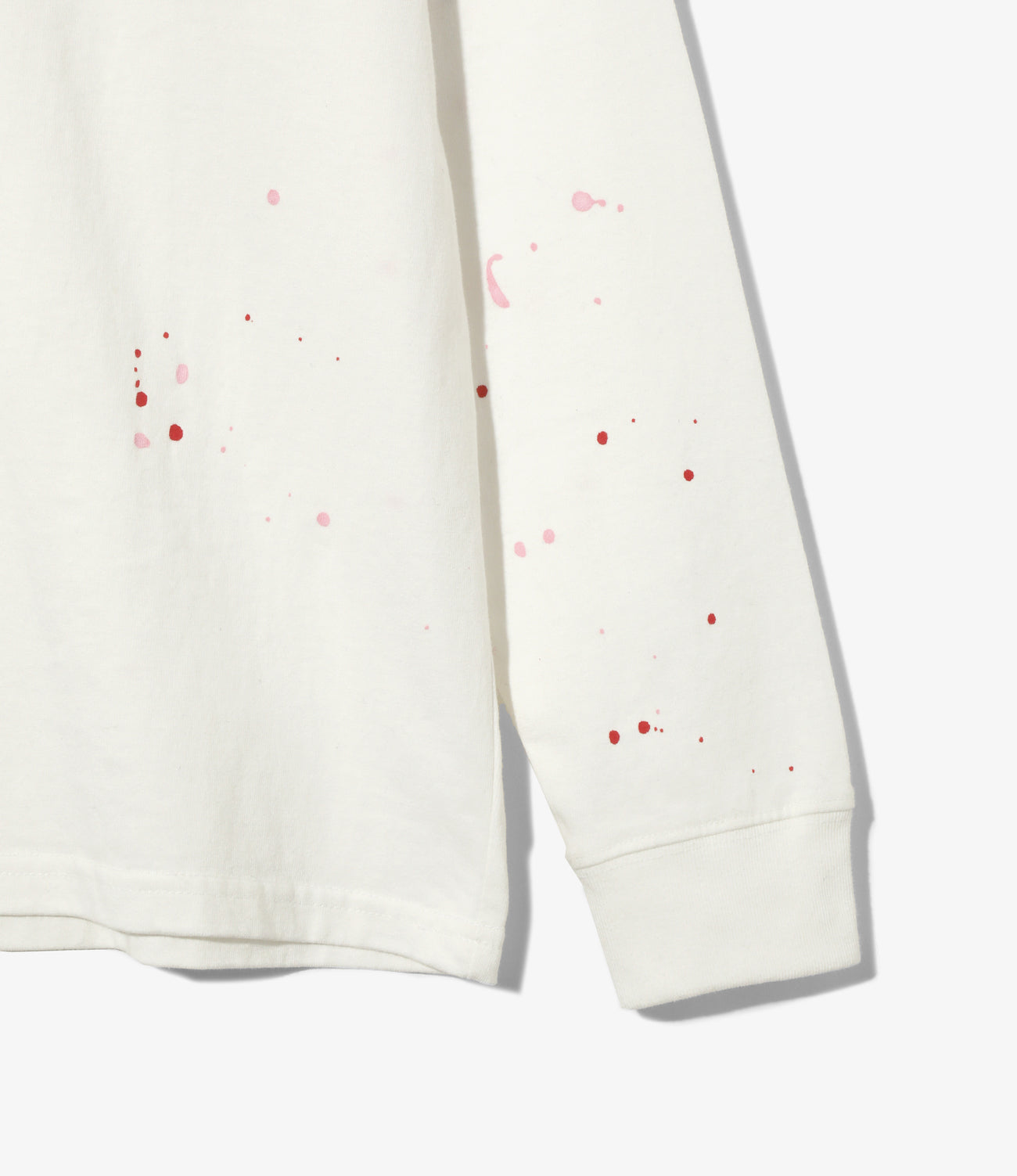 ワークウエアをテーマに汚れたTシャツをイメージし制作された、ハンドペイントで1点1点趣の違うペイントが魅力的なロングスリーブTの登場です。胸には<RHODOLIRION>のアイコンであるスワローとバラの大きなワッペンが搭載されておりドラマティックな印象です。素材は、空紡糸を使用した天竺素材となります。繊維間に空間があるので肉感があり、シャリ感が出てドライタッチです。ザックリした風合いと、吸湿性が高く、速乾性に優れているのも特徴です。