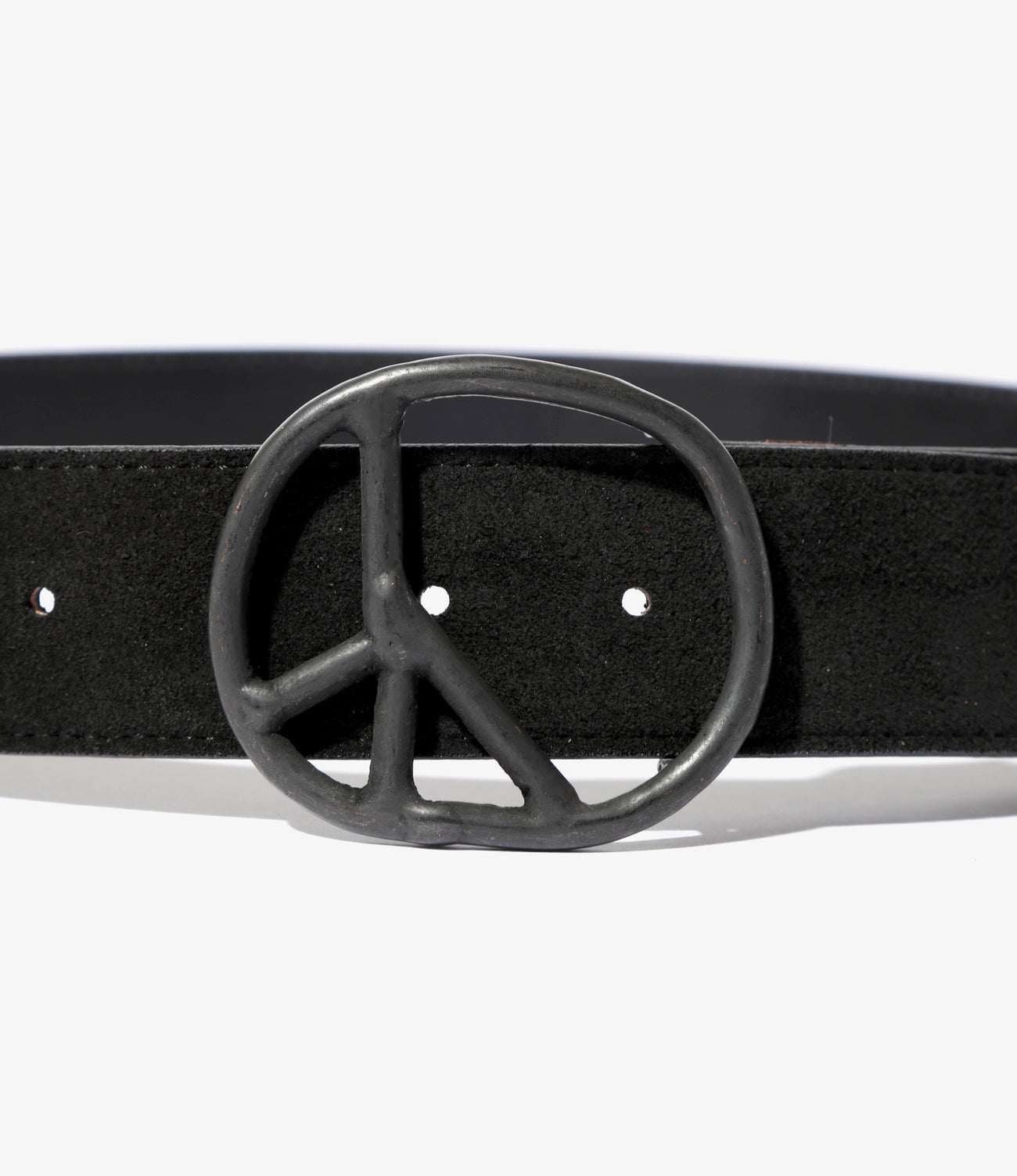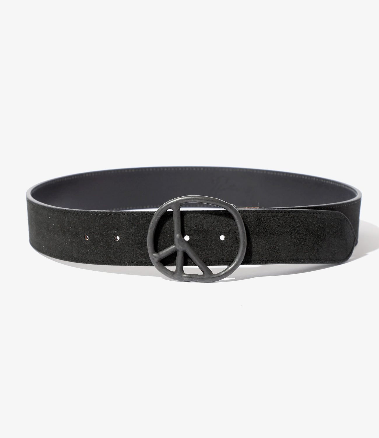ハンドメイドのようなの味わいあるピースマークをバックルにデザインした、〈NEEDLES〉定番のレザーベルト。大ぶりで存在感のあるバックルに対し、レザーベルト部分はシンプルなデザインとなっています。スタイリングのアクセントとして、抜群の存在感を放つアイテムです。今季からスエード素材のバリエーションが登場しています。