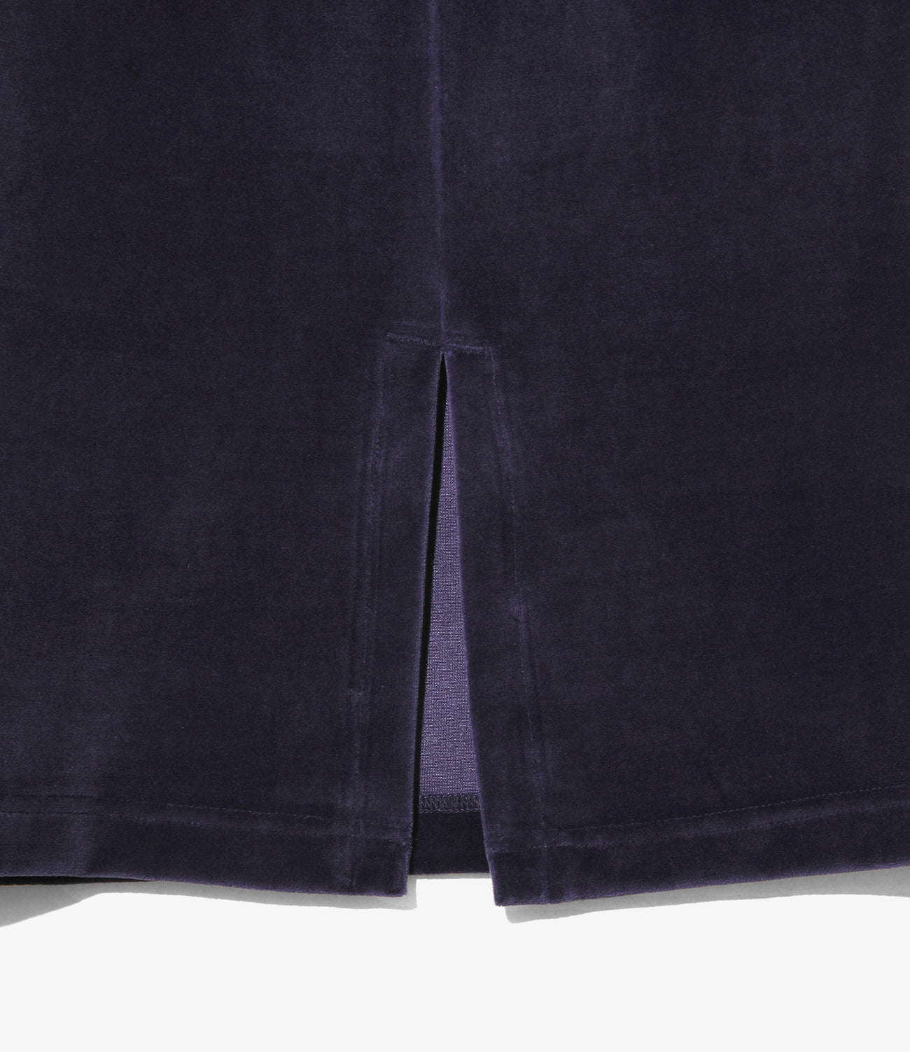 定番のポリエステルジャージー素材と並び、高い人気を誇るベロア素材を使用したペンシルスカートです。タイトシルエットにバックスリットを加えることで、動きやすさと上品さを両立。シンプルなデザインながら、女性らしい雰囲気を感じさせる一着です。単体での着用はもちろん、同素材のトラックカーディガンとセットアップでもお楽しみいただけます。