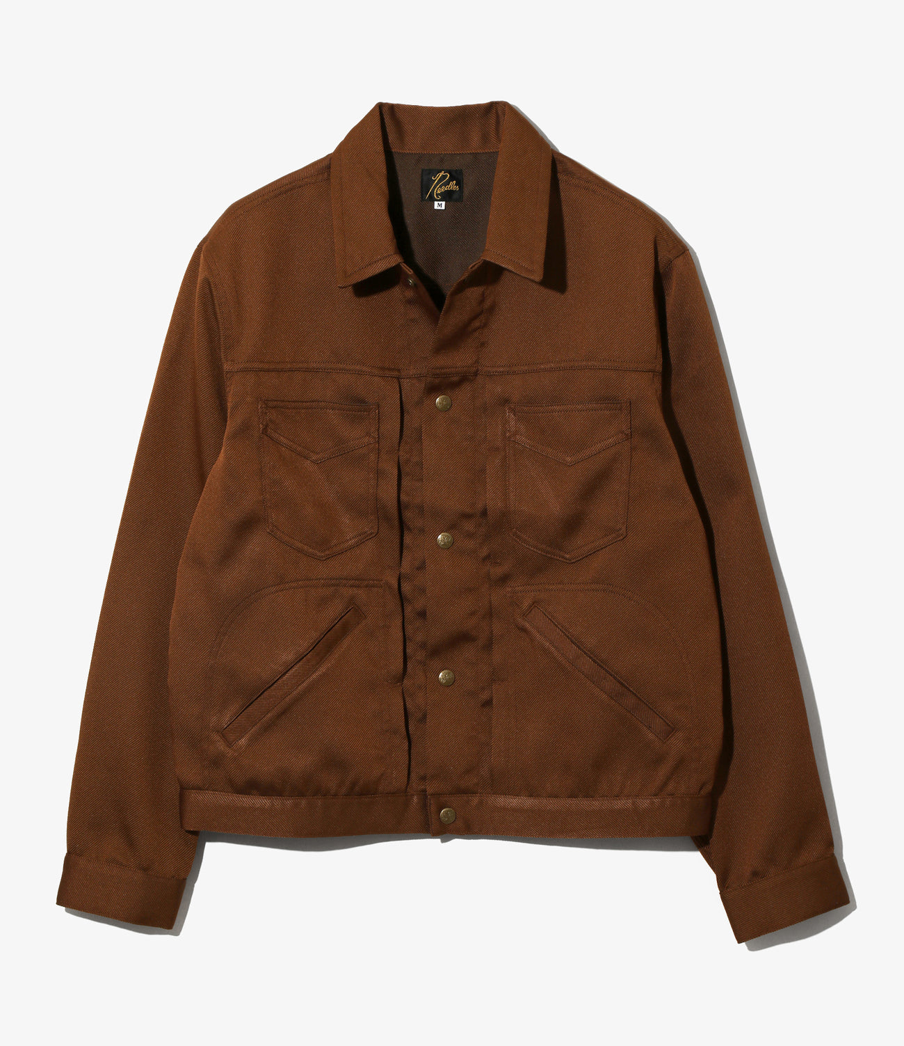クラシックなジーンジャケットを思わせるデザインに、ワークウェアを連想させるポリエステルツイル素材を合わせた一着。ポケット、プリーツ、カンヌキなど、一見シンプルな中に存在する凝ったディテールもユニークなアイテムです。一年を通して着用可能な定番デザインとなっており、今季はインディゴ、ブラウン、パープル、ブラックの4色展開。同素材でブーツカットとストレートの2型のパンツもリリースされています。