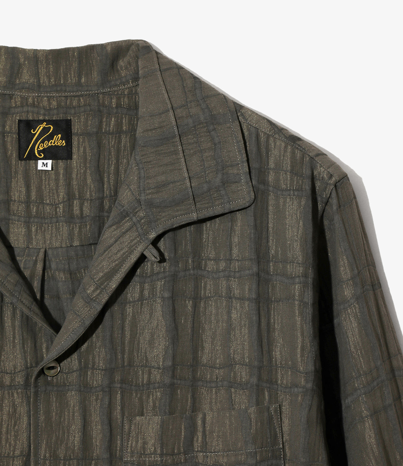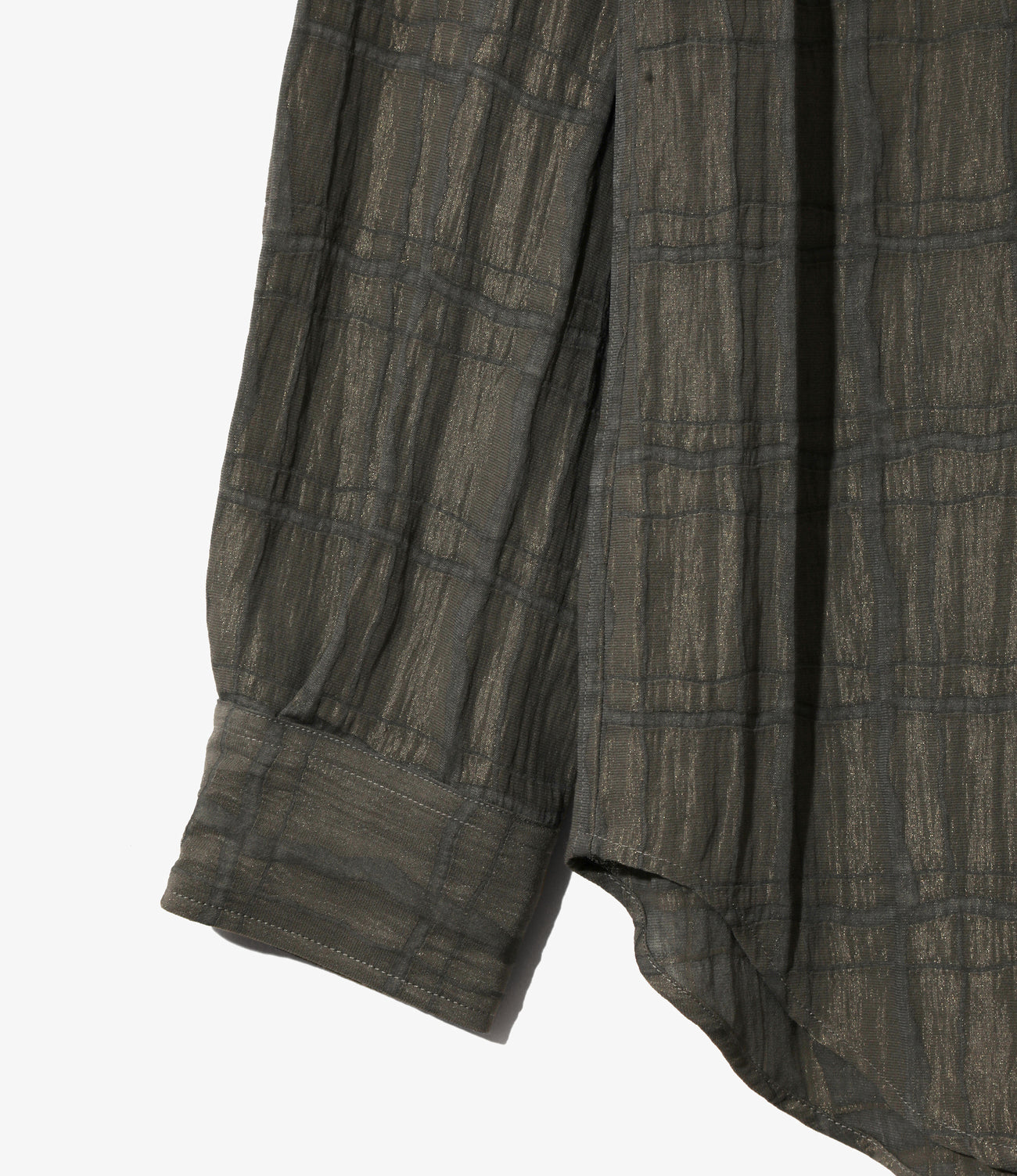 独特の襟型に涼し気な首周りのデザインがユニークな開襟シャツ。しわ感と落ち感のあるクレープ生地にチェック柄がクラシックな印象。