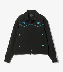 ショート丈とワイドな身幅のバランスでデザインされたカウボーイシャツジャケット。随所に施されたパイピングや蝶の刺繍、スナップボタンなどのウェスタンウェアの装飾的なディテールが〈NEEDLES〉らしい一着です。弾力のある厚手の素材感もジャケットのレトロなムードにマッチしています。同素材でパンツも展開されており、セットアップでもお楽しみ頂けるアイテムです。