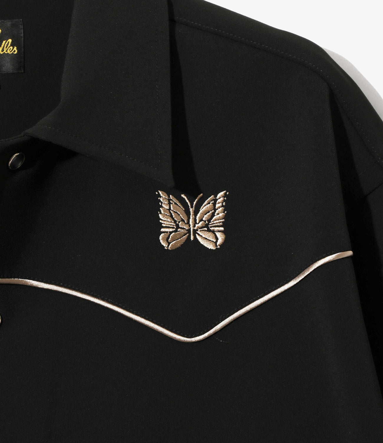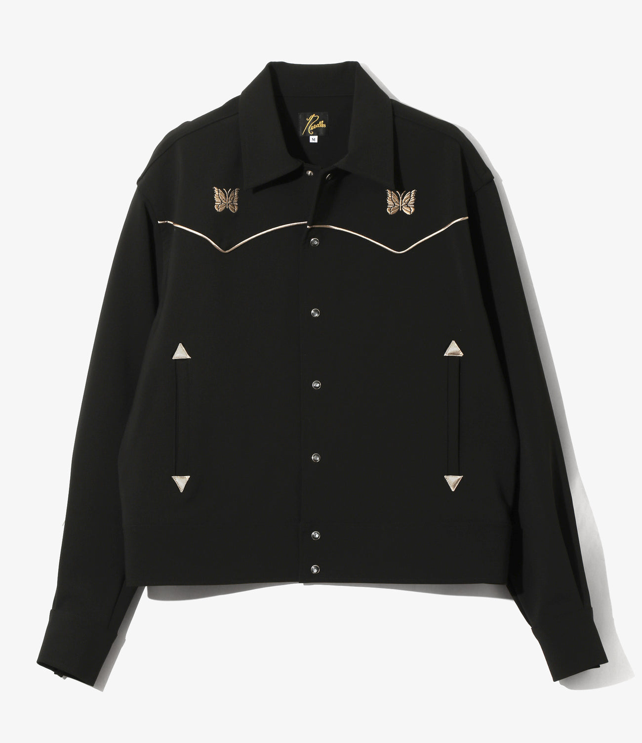 ショート丈とワイドな身幅のバランスでデザインされたカウボーイシャツジャケット。随所に施されたパイピングや蝶の刺繍、スナップボタンなどウェスタンウェアの装飾的なディテールが〈NEEDLES〉らしい一着です。弾力のある厚手の素材感もジャケットのレトロなムードにマッチしています。同素材でパンツも展開されており、セットアップでもお楽しみ頂けるアイテムです。