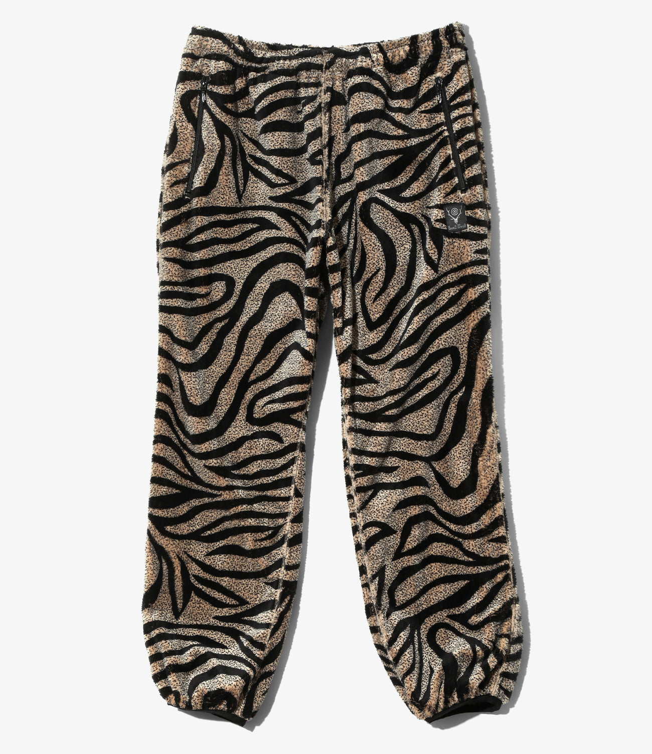 滑らかな手触りのポリエステルフリース素材を使用したイージーパンツ。裾に施されたパイピングに、個性的なファブリックが特徴的なデザインです。保温性も抜群で速乾性にも優れているため、デイリーに活躍する一本となっています。