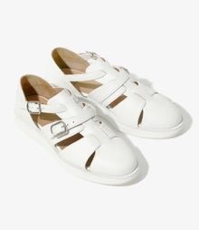 英国由来であるグルカ兵のサンダルをヒントにデザインした新作のフィッシャーマンシューズです。革のバンドの編み込みにより覆われたアッパーを特徴とした、通気性とホールド力を兼ね備えたサンダル。アッパーはフェイクレザー、靴底はアッパーと同素材をサイドに巻きつけワントーンに仕上げています。ライニングは素足でも気持ち良い履き心地を追求し、本牛皮を採用しました。開きのないトゥにしているのでソックス履きで秋冬でも活躍する仕様に。