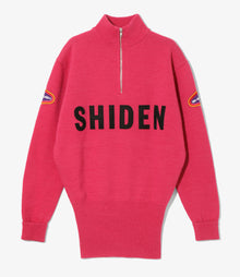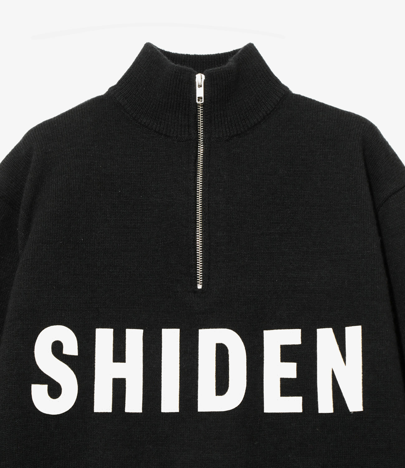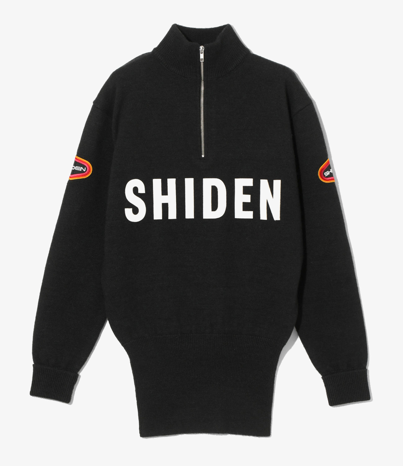 モータースポーツカルチャーから着想を得た〈SHIDEN〉のレーシングセーター。フロントに大胆に配されたブランドロゴと、両袖のワッペンディテールが印象的な一着です。ウール100%のしっかりと厚みのあるニット素材を使用、ハーフジップを開けると襟のようなデザインに変化し、コーディネートの幅も広がります。程よくゆとりのあるシルエットと長めのリブが、スポーティで立体的なフォルムを演出します。