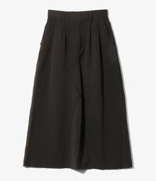 生地の縁(エッジ)仕上げを施さず、あえてそのままにしたロウエッジ(切りっぱなし)スカート。エッジを未仕上げのまま残すことで、他にはないラフでユニークな雰囲気が個性を発揮する一着に仕上がっています。同素材のジャケットとセットアップも可能です。