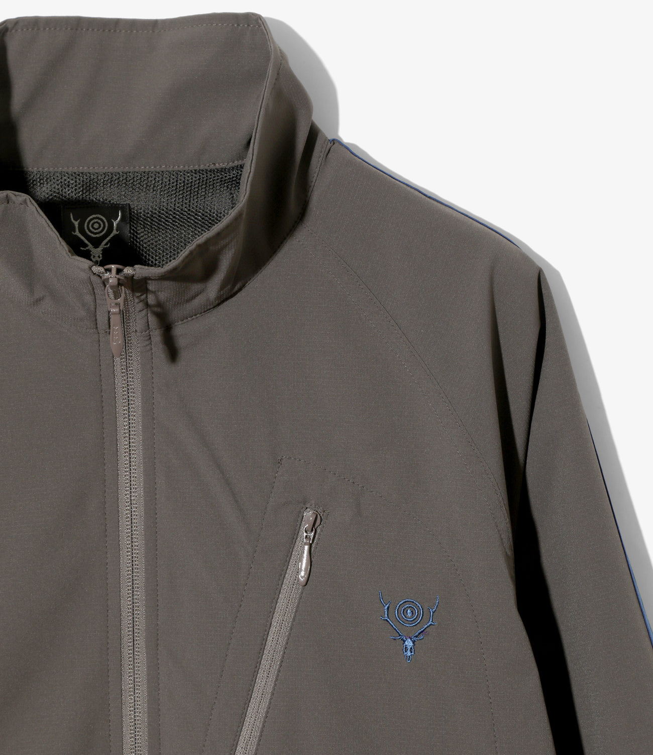 スタンドカラーとサイドラインのシンプルなデザインが特徴的のジップアップジャケット。胸のジップポケットやロングテールのシルエット、裾のドローコードなどスポーティでアクティブなディテールが満載の一着です。スリーブに施されたサイドラインがアクセントになった、〈SOUTH2 WEST8〉定番の一着です。ポリエステルリップストップ素材は強度に優れ、軽い着心地が魅力です。