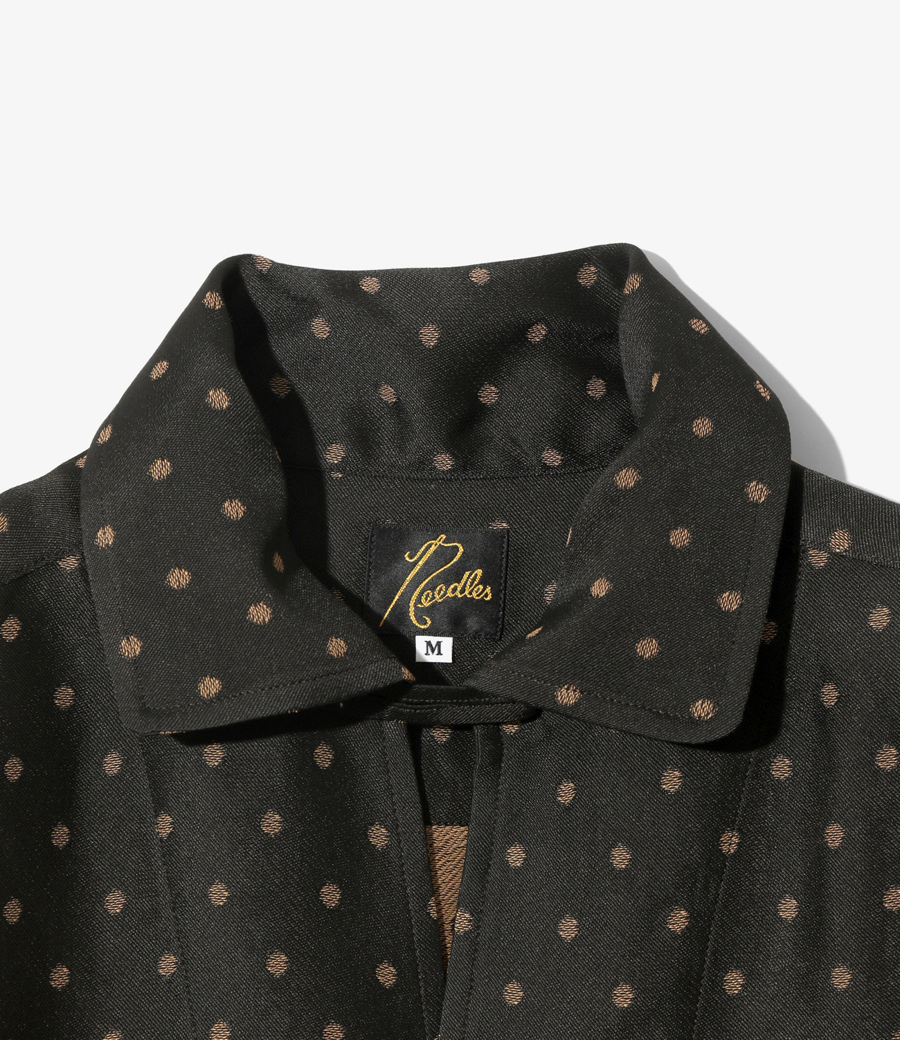見た目にも涼しげな独特の襟型が、リゾートウェアのような開放的なムードを漂わせるイタリアンカラーシャツ。襟型を除いては比較的ベーシックでシンプルなデザインです。ドット柄も、肌触りが気持ち良いレーヨン素材で上品な印象です。