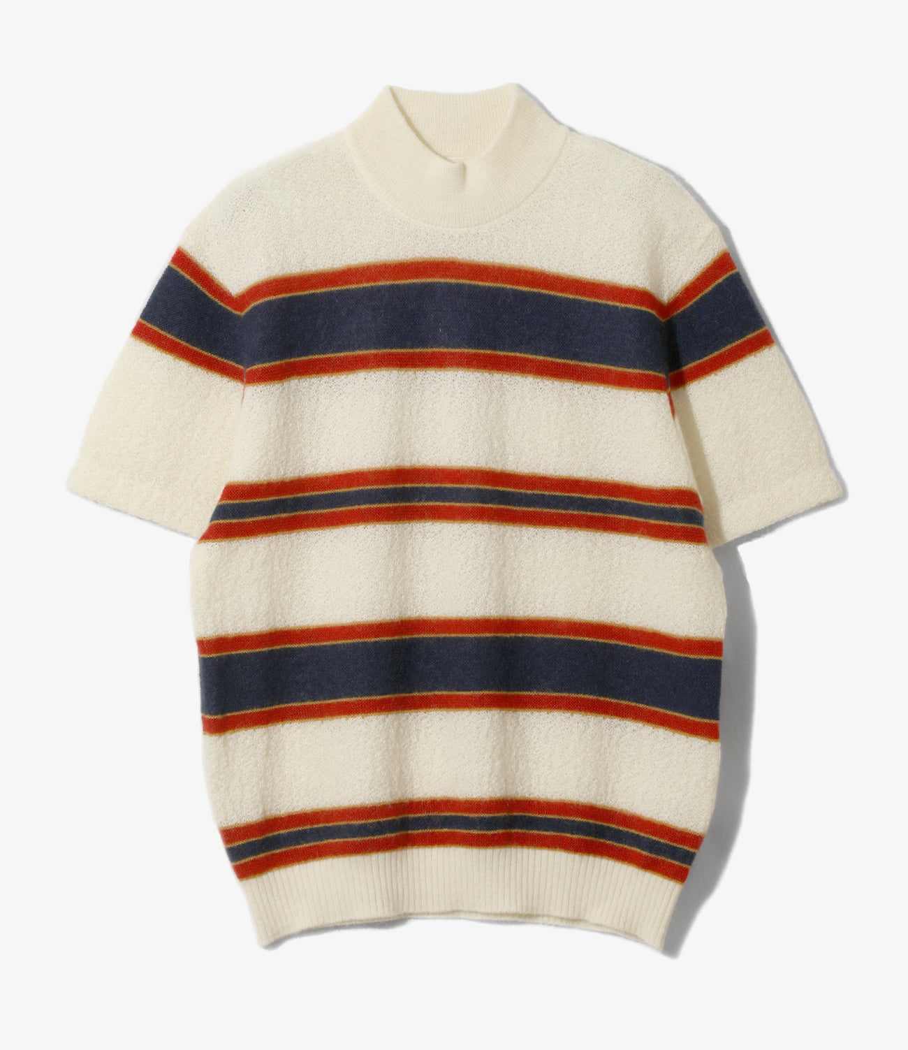 - Item : S/S Mock Neck Sweater - Crepe Weave Stripe