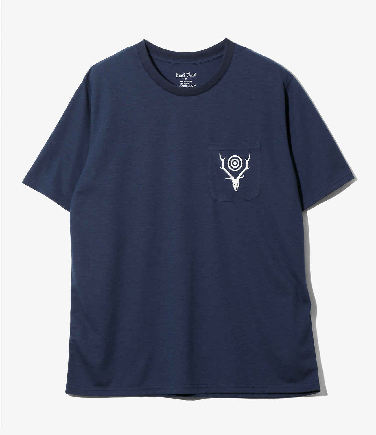 通気性や速乾性に富んだ、ポリエステル/コットンの混紡素材を使用した半袖ポケットTシャツ。フロントのポケットにはディアスカルとターゲットマークのアイコンが、バックには大胆にサークルホーンのプリントが施されています。ブラック・ネイビー・グリーン・ホワイトの4色展開。