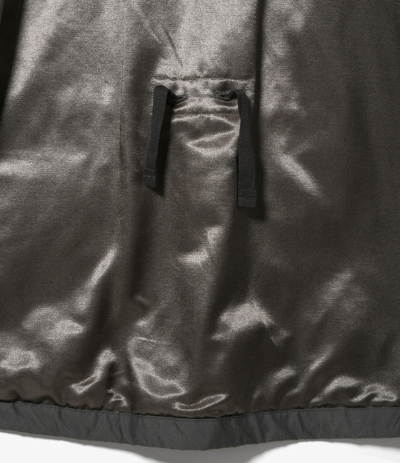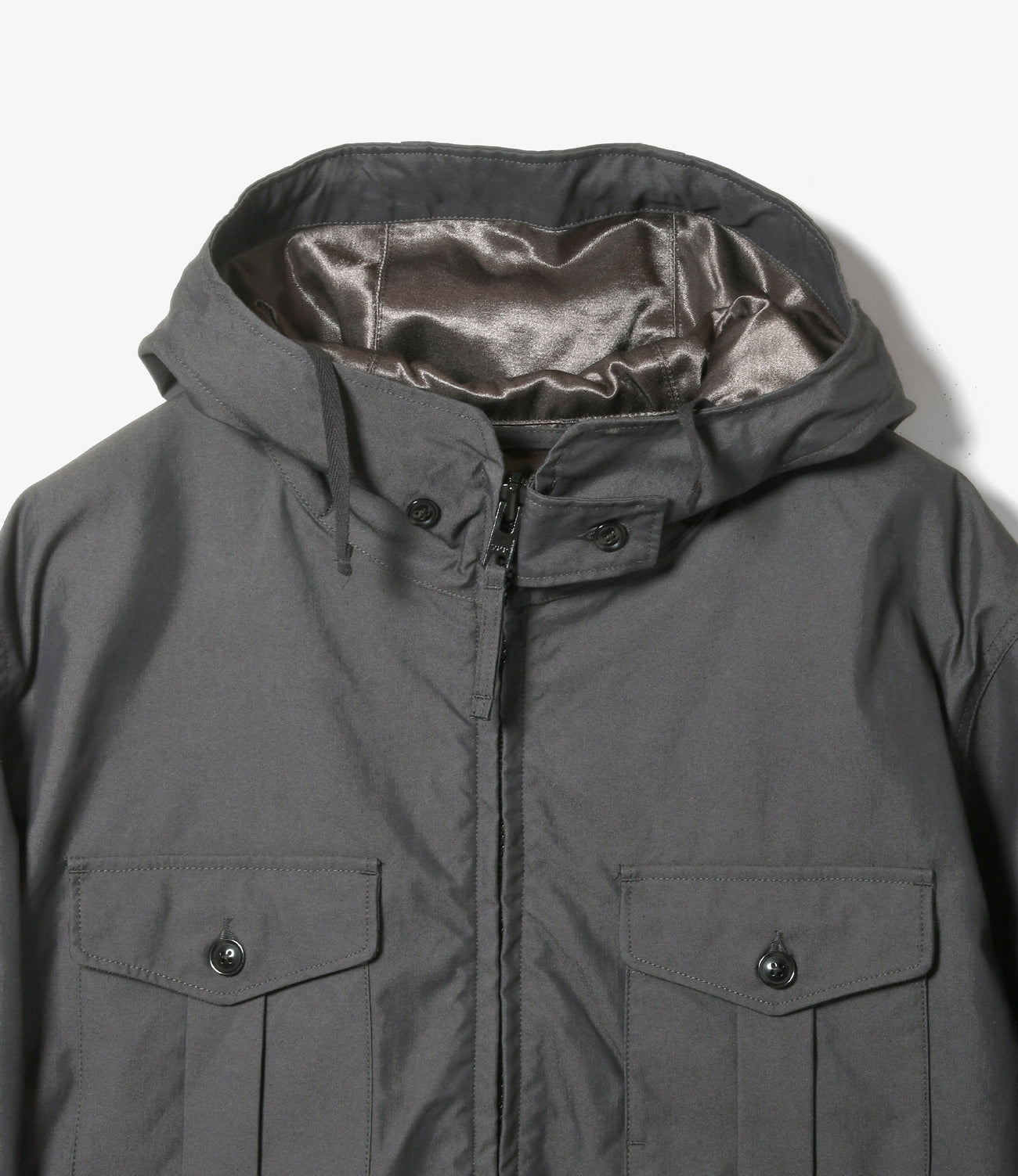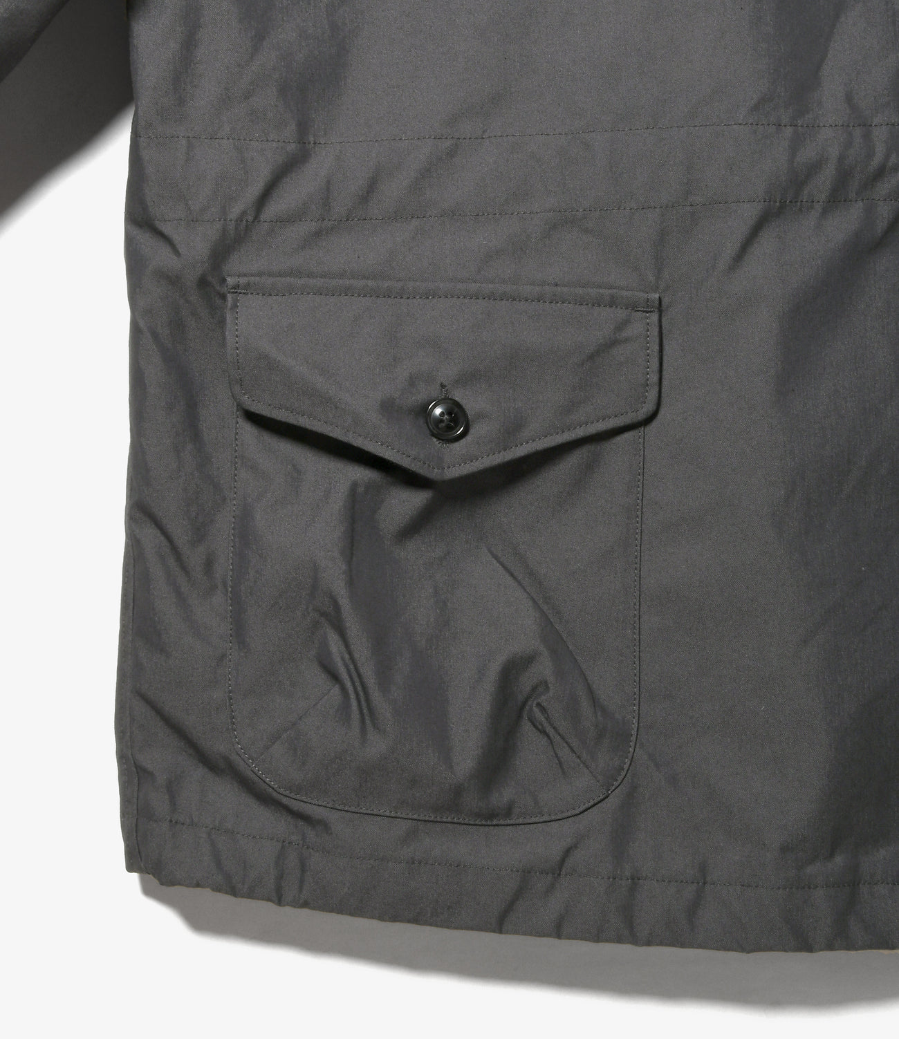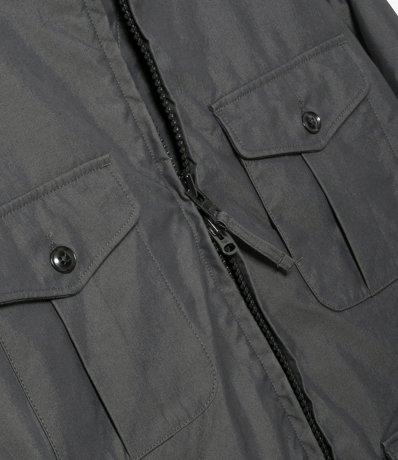 フロントの4フラップポケットのシンプルなデザインが特徴のSAS Jacket。下の2つのポケットはサイドからアクセスできるハンドウォーマーとなっています。ライニングはキルティングになっており、風を通しにくく保温性もアップ。バックにも2つのフラップポケットを備えた仕様です。軽量でありながら強度のあるCPウェザー素材は、アウトドアやミリタリーの雰囲気をさらに感じさせます。