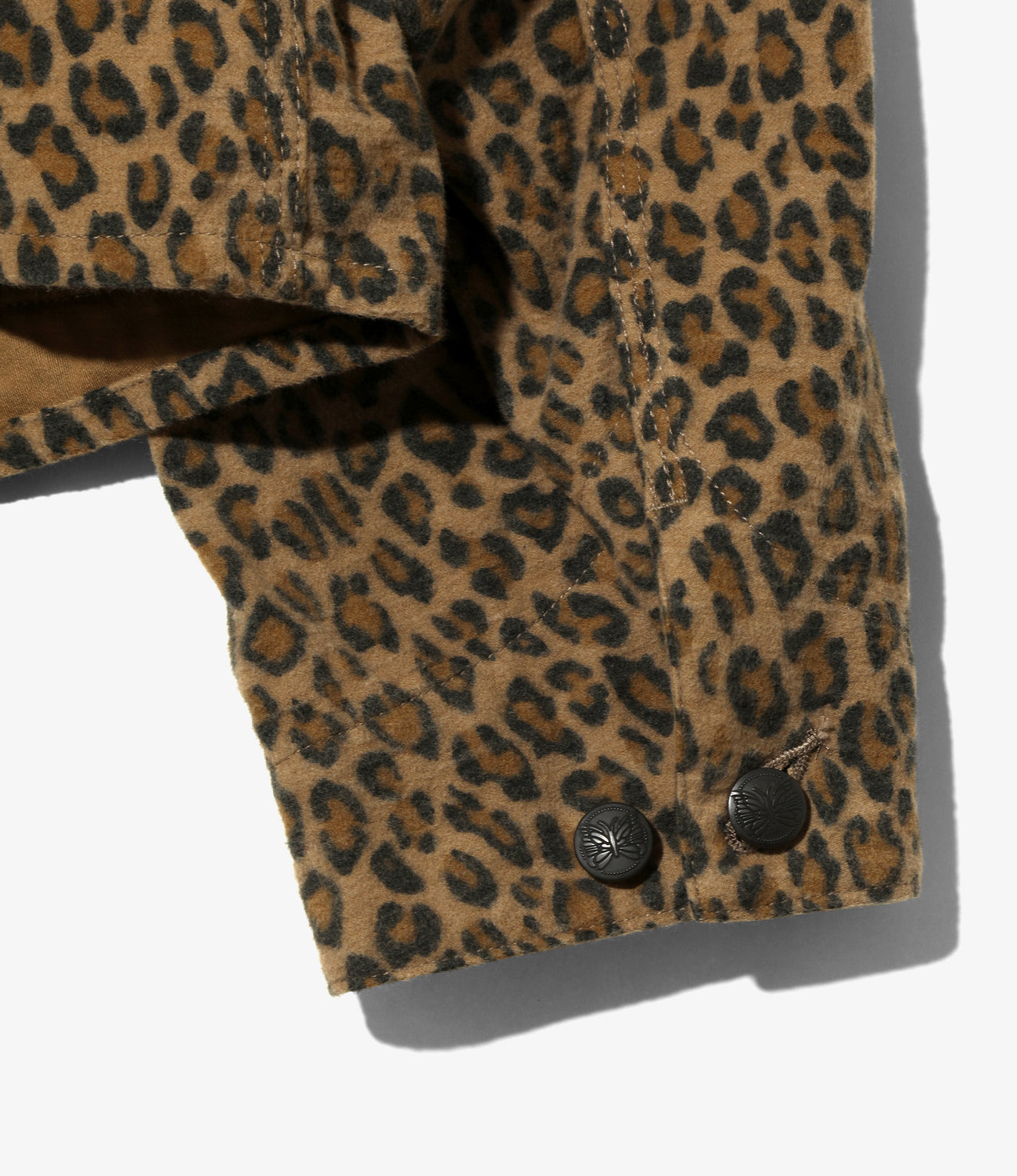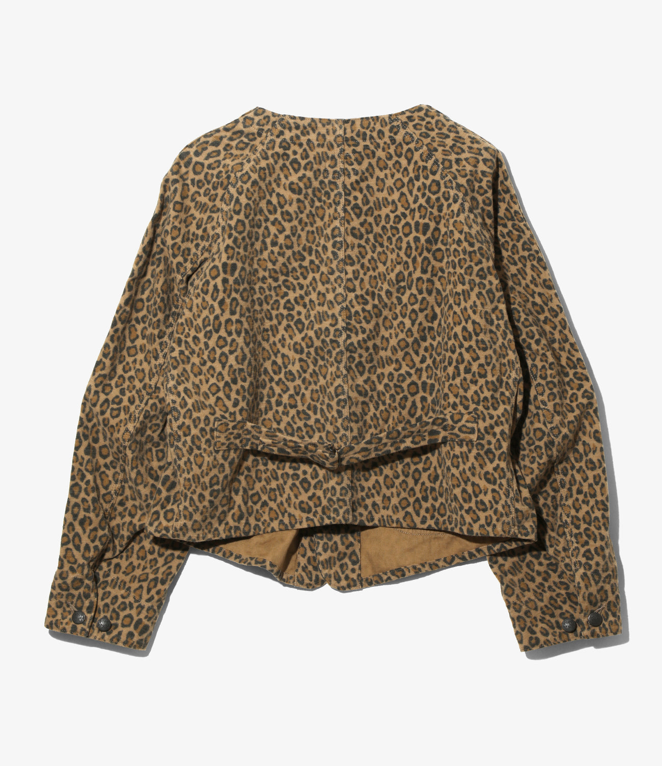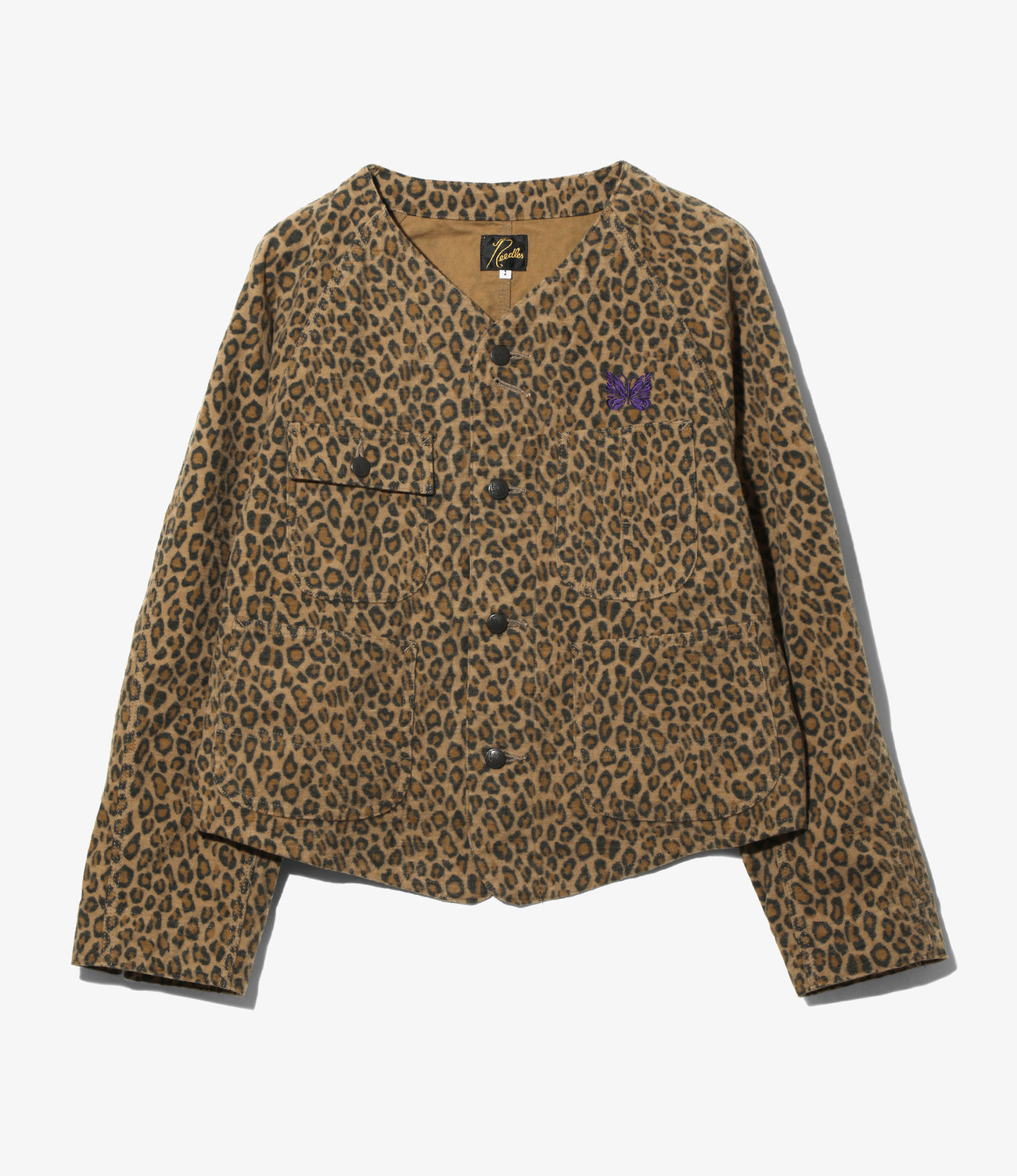 NEPENTHES WOMAN各店のみで展開される限定コレクションが登場。ノーカラーにショート丈のバランスが新鮮なカバーオールジャケット。ワークウェアらしいトリプルステッチや、ラグランスリーブ、中央に傾けて配置されたアシンメトリーな胸ポケット、蝶の刻印のメタルボタンなど、個性的なディテールが詰まったデザインです。ブラッシュド加工を施したレオパード柄の生地は、柔らかな風合いと優しい手触りで、秋冬シーズンにぴったりな温かみのある素材感です。