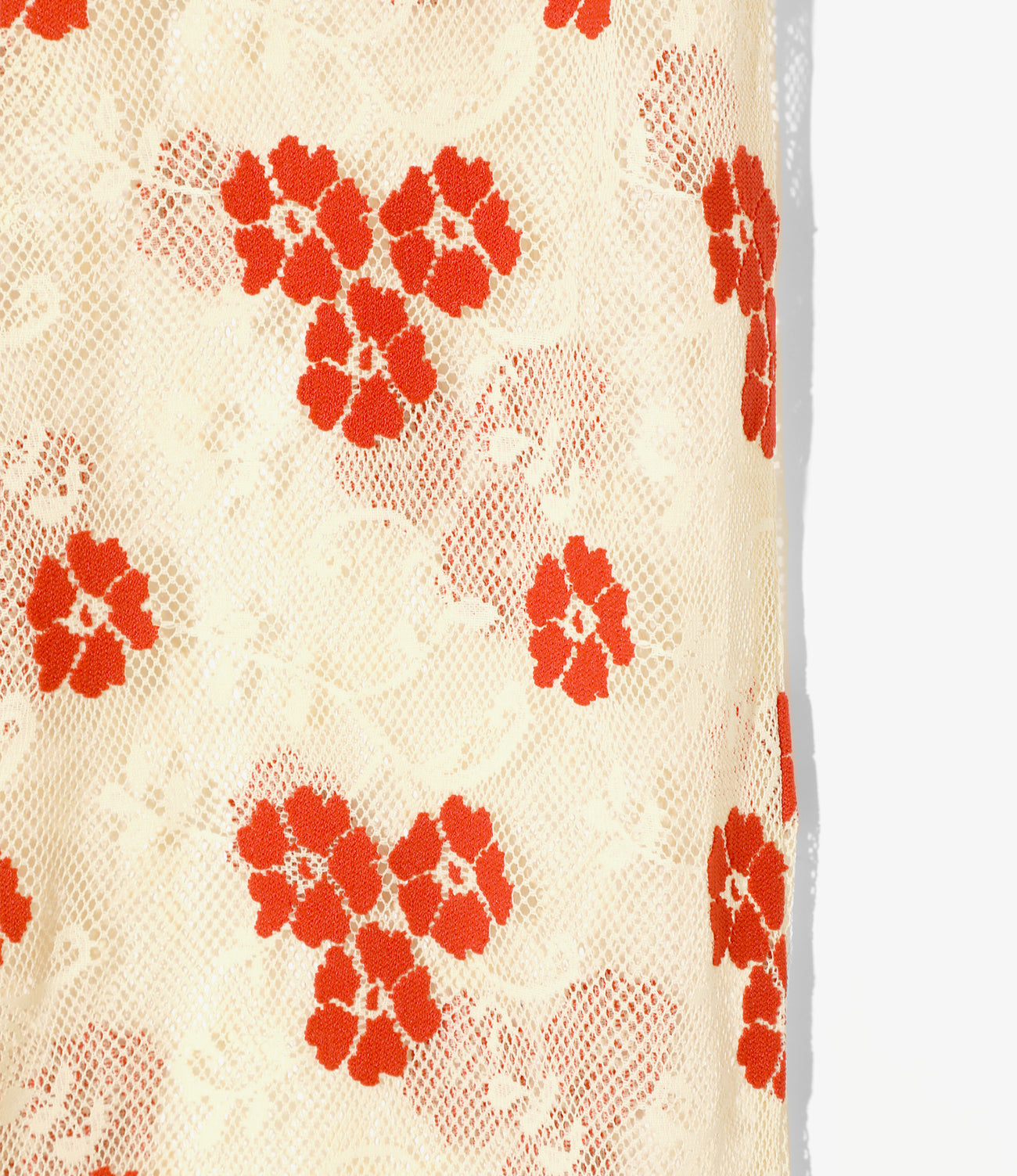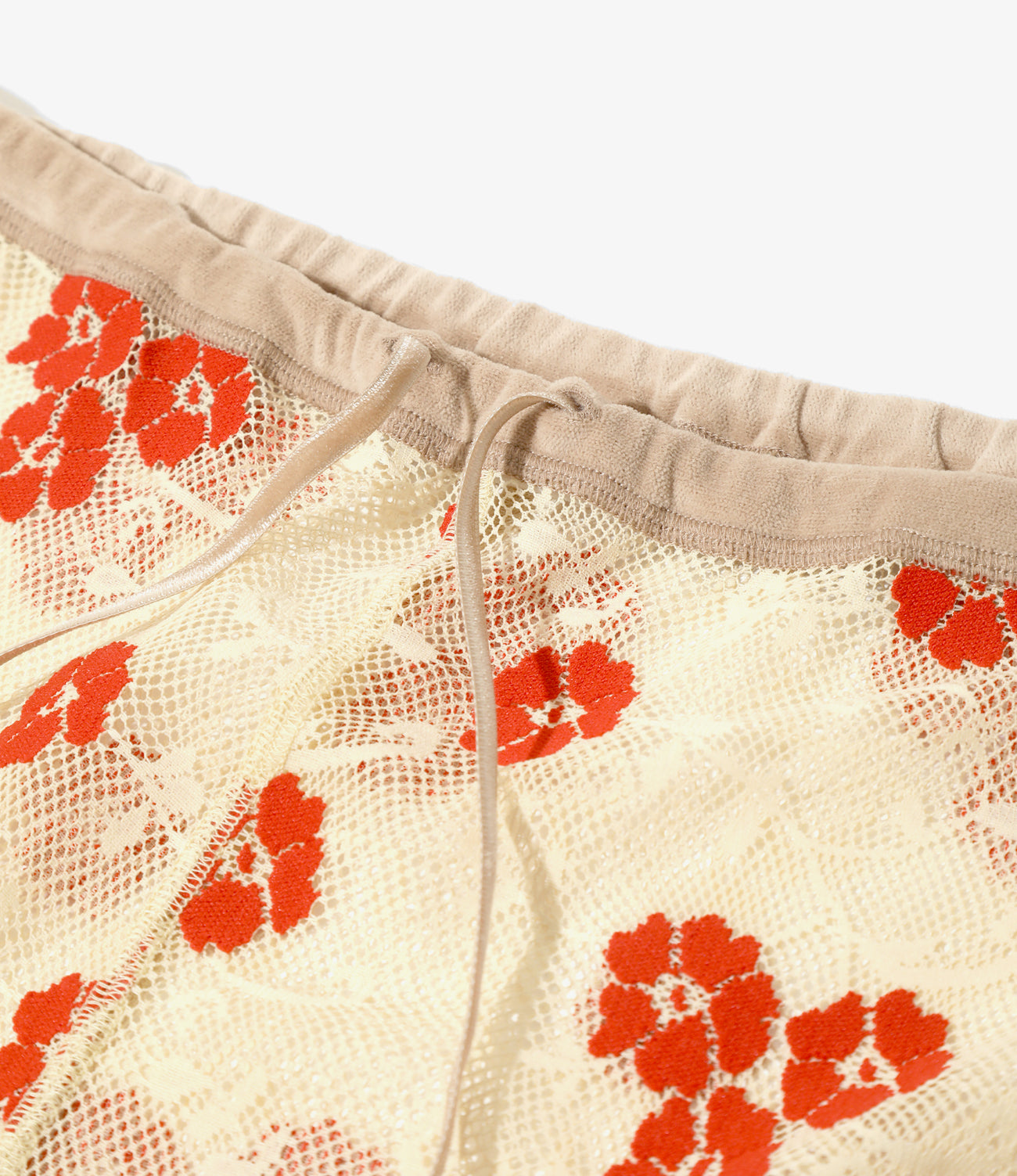 <RHODOLIRION>オリジナルの刺繍風の花柄レース生地を使用したフレアパンツです。ストレッチが効き、ポリエステル100%のイージーケアです。3本針の振りの効いた縫製はミリタリーのアンダーウエアのように男性的。清涼感があり肌触りもさらりとしているのでスカートやドレス下などレイヤリングに重宝します。レース生地から覗くレイヤードやカラーコーディネイトも楽しめます。シリーズはポロシャツ、ボレロ、スカートと全4アイテムです。
