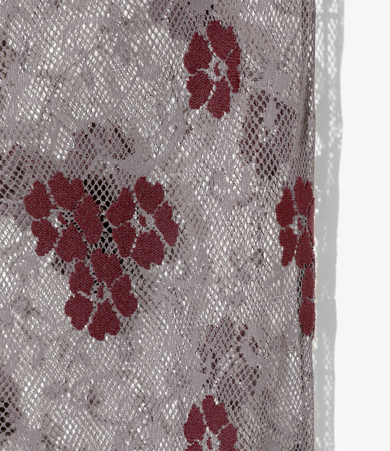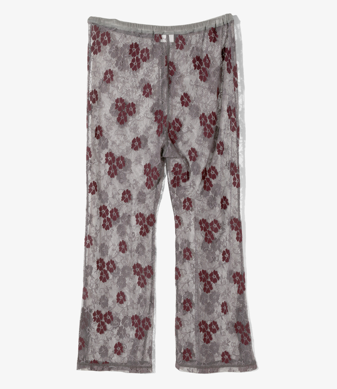 <RHODOLIRION>オリジナルの刺繍風の花柄レース生地を使用したフレアパンツです。ストレッチが効き、ポリエステル100%のイージーケアです。3本針の振りの効いた縫製はミリタリーのアンダーウエアのように男性的。清涼感があり肌触りもさらりとしているのでスカートやドレス下などレイヤリングに重宝します。レース生地から覗くレイヤードやカラーコーディネイトも楽しめます。シリーズはポロシャツ、ボレロ、スカートと全4アイテムです。