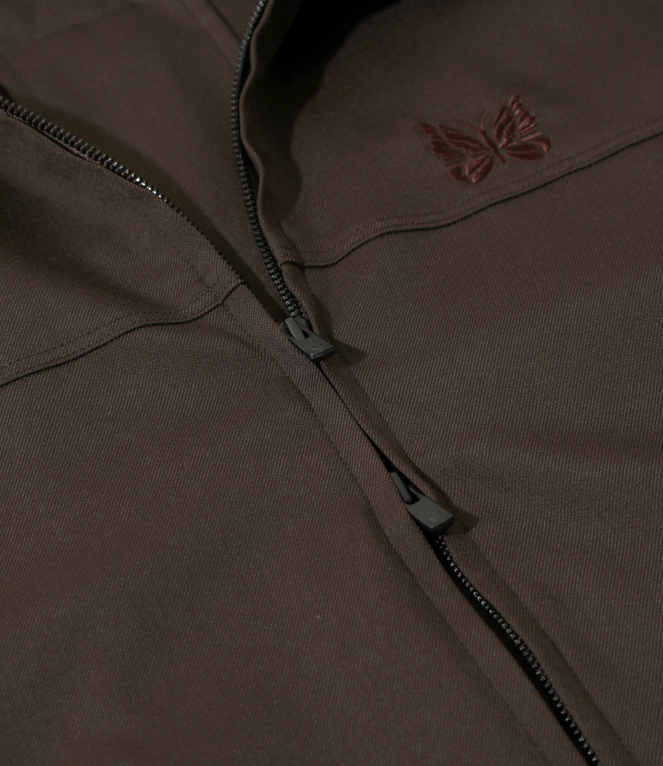 フロントジップに大ぶりの襟型、ショート丈のバランスがオーセンティックな印象のスポーツジャケット。〈NEEDLES〉では定番として展開されており、シンプルなデザインはシーズンを超えて活躍します。表面の綾織がはっきりと表れるハリの強いキャバルリーツイルを使用し、丈夫で耐久性にも優れた仕上がりです。同素材のジャケットやシャツも展開されており、セットアップでの着用も可能です。全3色のバリエーションで展開されています。