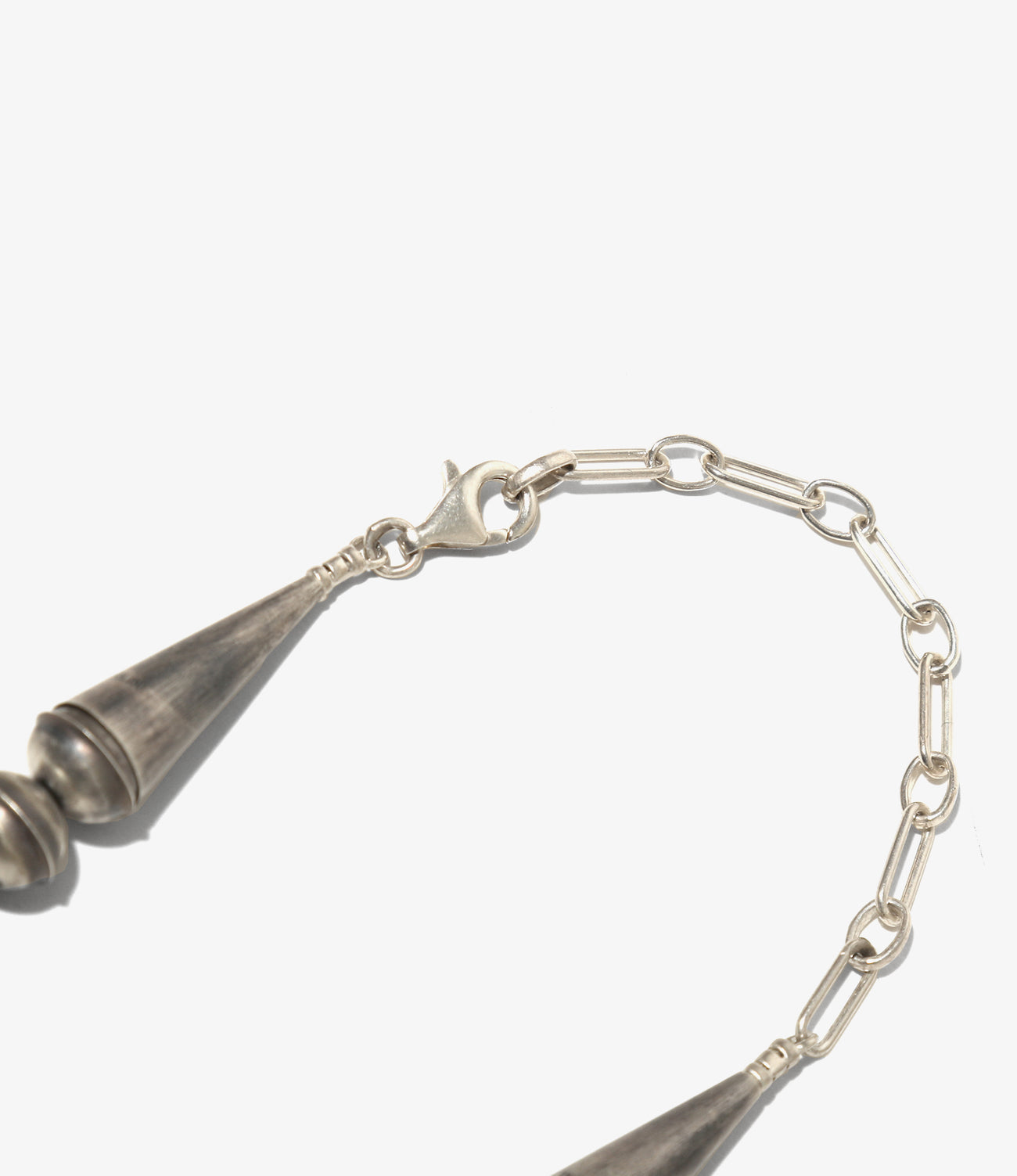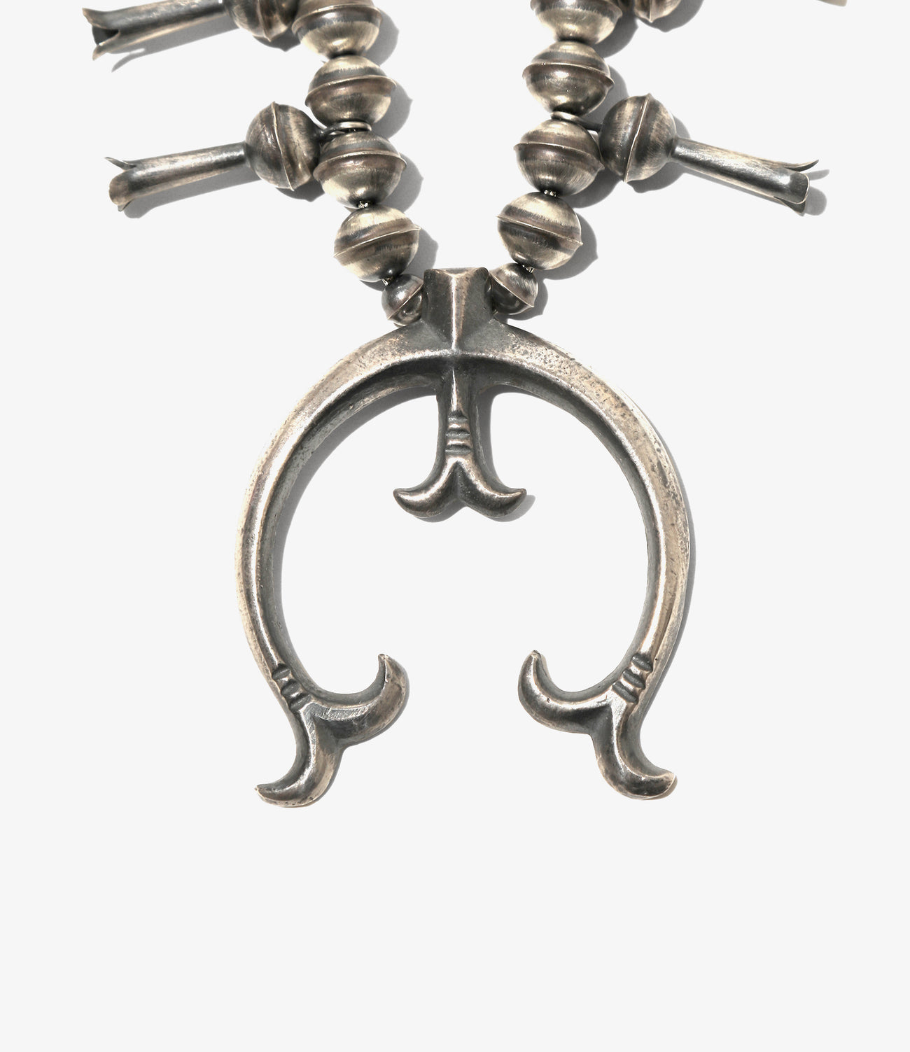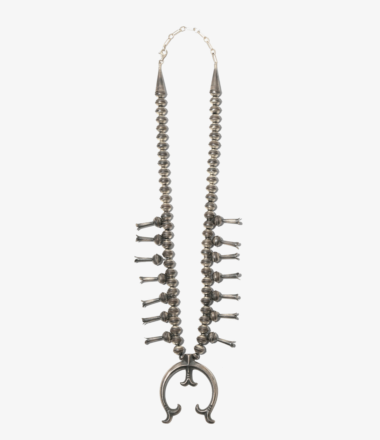 スタイリングに取り入れやすい、適度なボリュームのある洗練されたシンプルなデザインが特徴的なスカッシュネックレス。制作はナヴァホをルーツに持つ米ニューメキシコ在住のアーティストが行っています。フィニッシュはアンティーク感漂うマットな仕上げ。ユニセックスで着用頂けます。