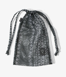 オリジナルのプリントを施したユニークなメッシュ素材を使用し 、制作されたストリングバック。水濡れにも強く、普段使いだけでなく、水辺などのアクティブなシーンでも活躍します。