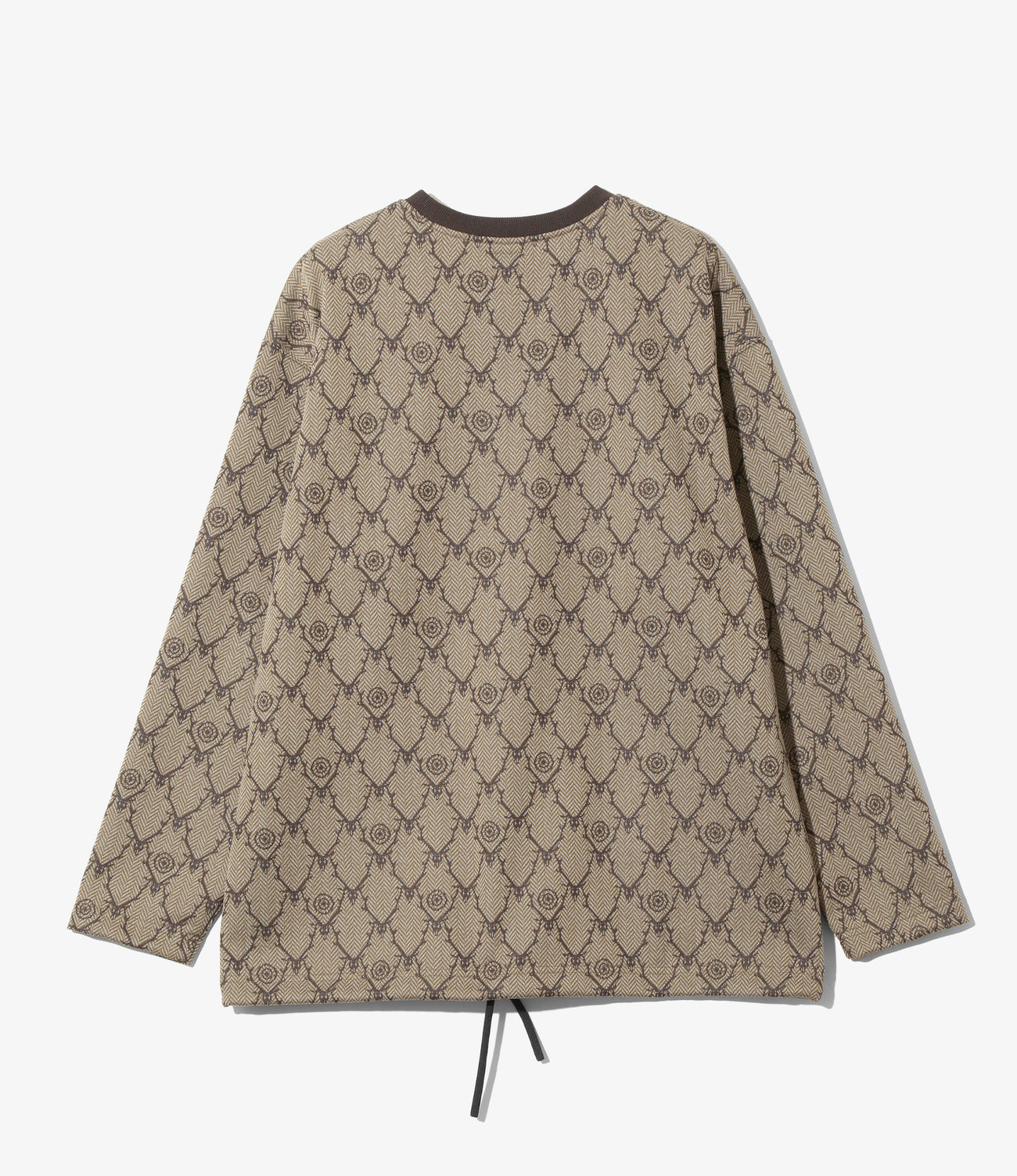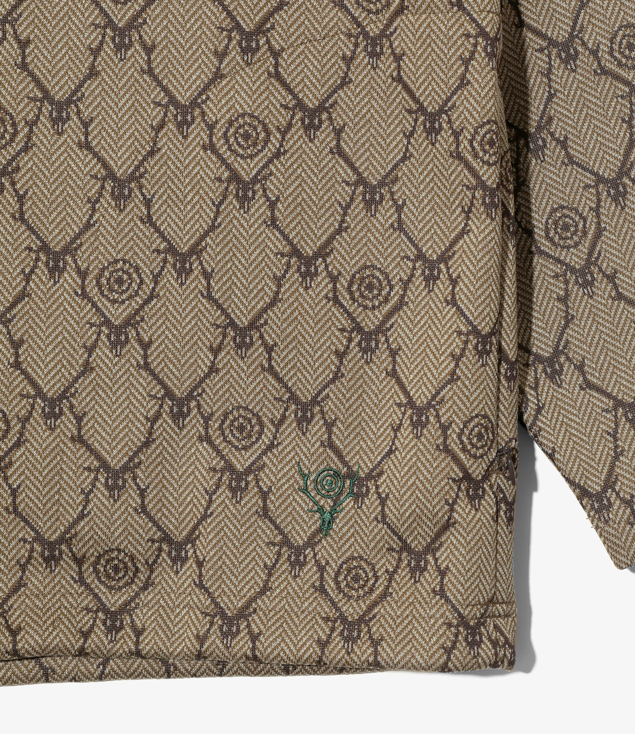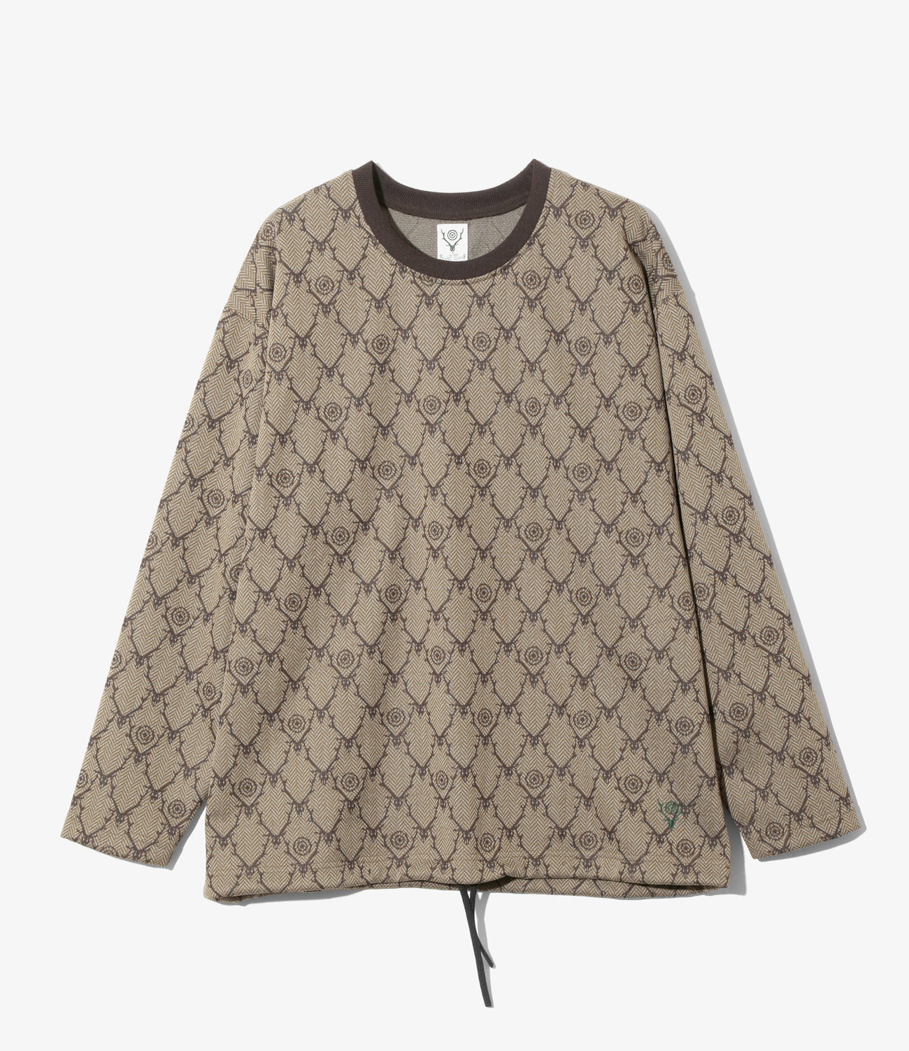 〈SOUTH2 WEST8〉のアイコンでもあるスカル&ターゲットがジャカード織の総柄で表現された一着。今季から登場した、クルーネックプルオーバー型のデザインです。リラックス感溢れるワイドシルエット、裾にはドローコード、両サイドにはジップポケットと機能的なディテールを備えています。通気性・伸縮性に富んだポリエステルジャージー素材を使用ており、タウンユースからアウトドアシーンまで幅広く活躍。同素材でパンツも2型展開されており、セットアップでの着用も可能です。