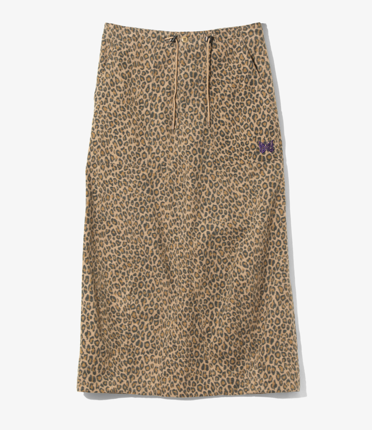 〈NEEDLES〉定番のドローコードウエスト仕様のリラックス感が魅力のファティーグスカート。シンプル&ベーシックなデザインで、シーズンや時代を問わず幅広く活躍する万能アイテムです。個性的なレオパード柄のファブリックは、ブラッシュド加工により肌触りが良く、秋冬らしい温かみを感じる一着です。