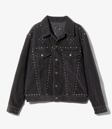 多数のスタッズが大胆に打ち込まれた、存在感を放つジーンジャケットがリリースされました。ラウンドヘッドやスター、華やかなジュエルスタッズがふんだんに使用されています。背面にはスタッズでブランドネームやピースマークが表現され、さらにパピヨン(蝶)の大きなワッペンが非常に個性的でラグジュアリー感のあるデザインとなっています。