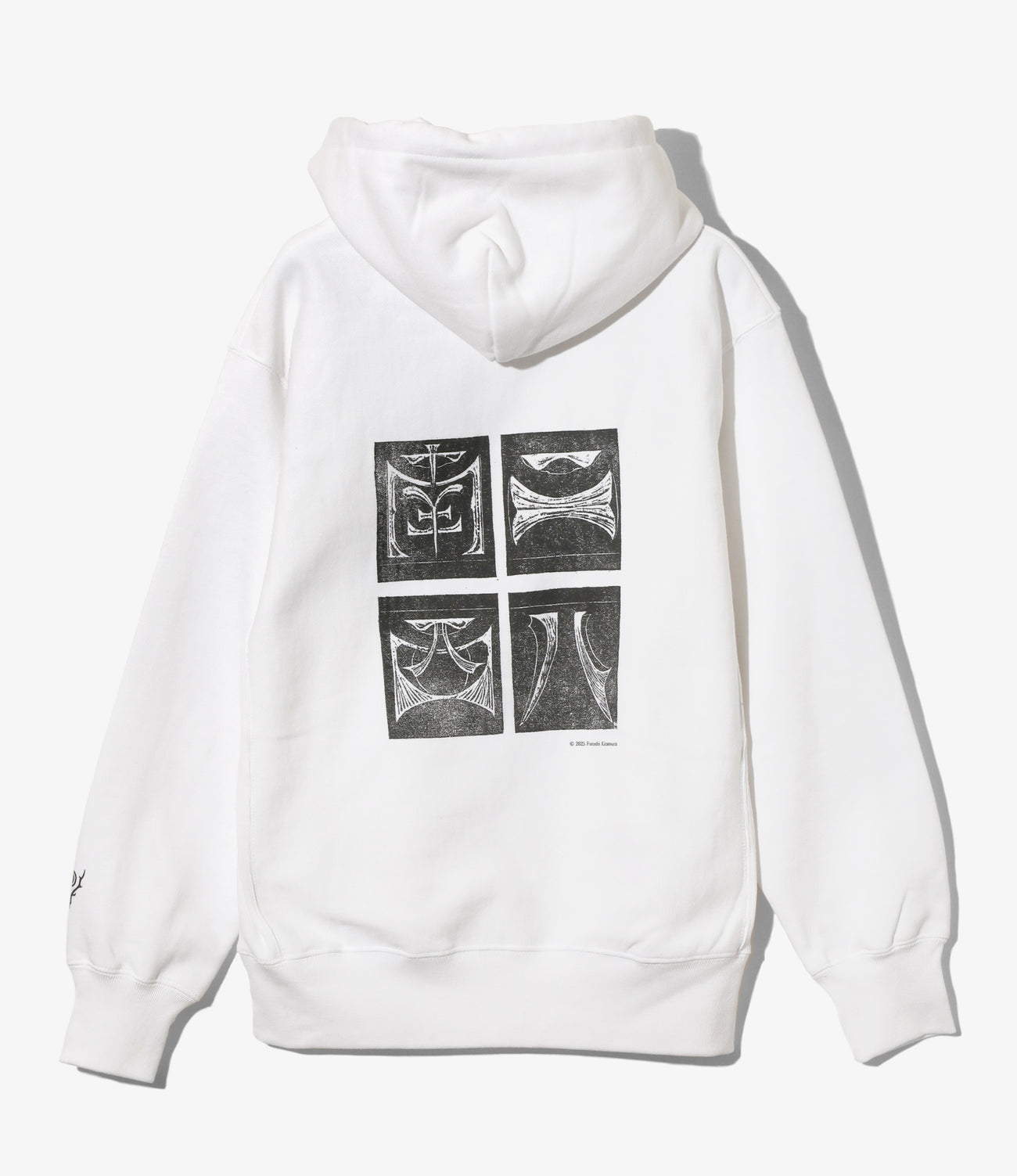 北海道の版画家・北村太氏と〈SOUTH2 WEST8〉によるコラボレーション。北海道の動植物やトラウト、名山などを題材にした版画アートをモノクロプリントで表現し、ユーモラスで緻密な世界観を落とし込みました。北村氏の視点で再解釈されたオリジナルロゴもポイント。スウェットパーカ、ロングスリーブTシャツ、グロッサリーバッグなど全6型で展開されます。