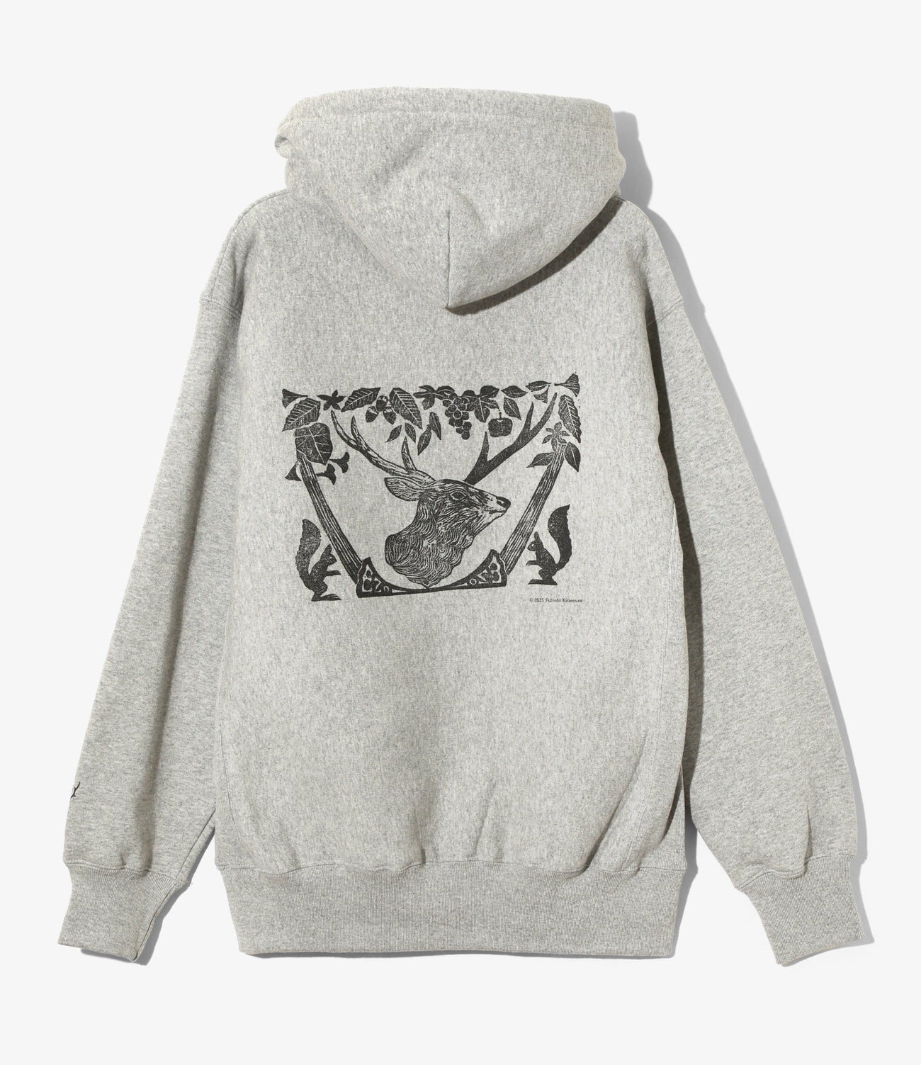 北海道の版画家・北村太氏と〈SOUTH2 WEST8〉によるコラボレーション。北海道の動植物やトラウト、名山などを題材にした版画アートをモノクロプリントで表現し、ユーモラスで緻密な世界観を落とし込みました。北村氏の視点で再解釈されたオリジナルロゴもポイント。スウェットパーカ、ロングスリーブTシャツ、グロッサリーバッグなど全6型で展開されます。