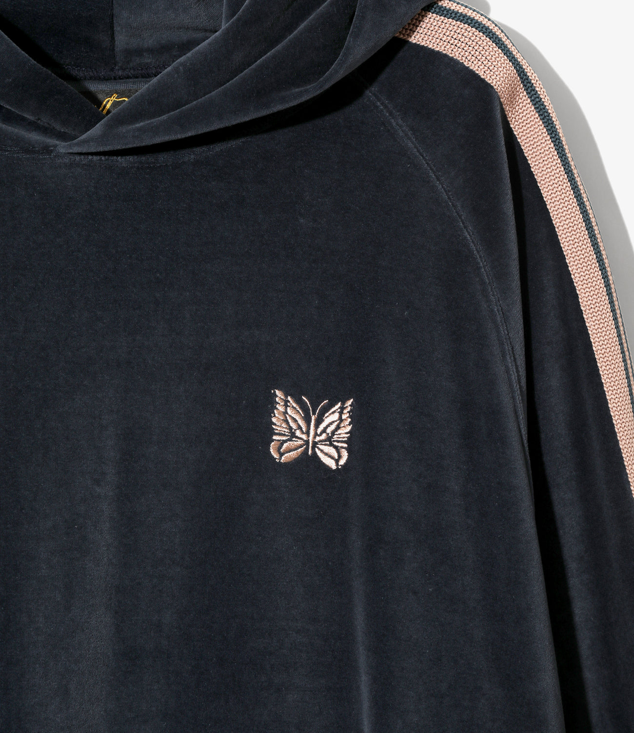 定番のポリエステルジャージー素材と並んで人気の高い、ベロア素材を使用したフーディが今季もリリースされています。ソフトな発色と艶感のあるベロア特有のラグジュアリーな雰囲気が特徴的な一着です。サイドには存在感のあるラインテープが施されています。今シーズンはスチールブルー、トープ、ブラウンの3色でリリースです。