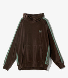 定番のポリエステルジャージー素材と並んで人気の高い、ベロア素材を使用したフーディが今季もリリースされています。ソフトな発色と艶感のあるベロア特有のラグジュアリーな雰囲気が特徴的な一着です。サイドには存在感のあるラインテープが施されています。今シーズンはスチールブルー、トープ、ブラウンの3色でリリースです。