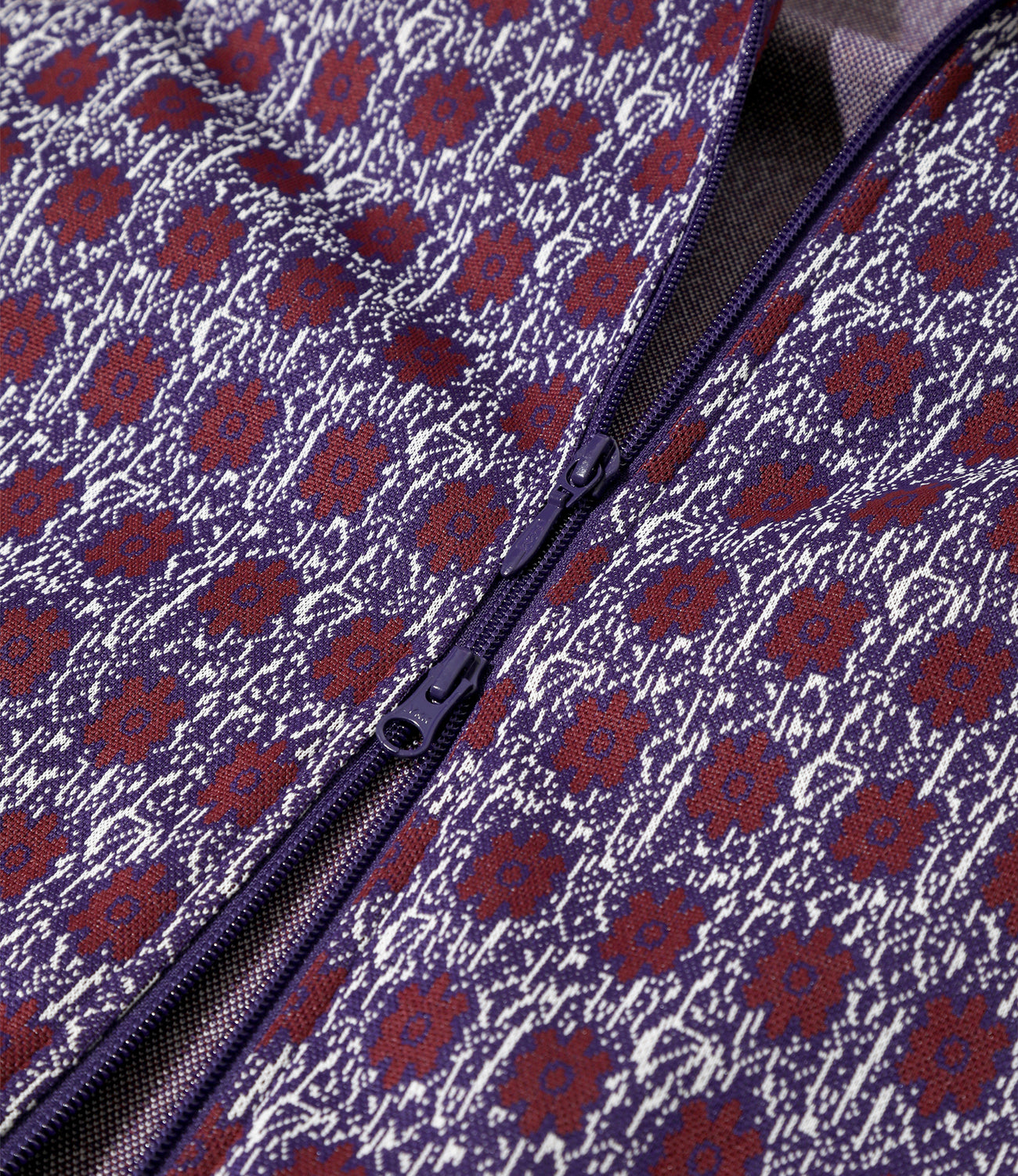 毎シーズン、オリジナリティあふれるポリエステル製のジャカード素材で制作されるトラックジャケット。スポーティなトラックジャケットに、レトロなムードのファブリックを使用した定番アイテムです。今シーズンはプレイド、ブラックジャック、パッチワーク、アラベスク、フラワーの5色展開です。