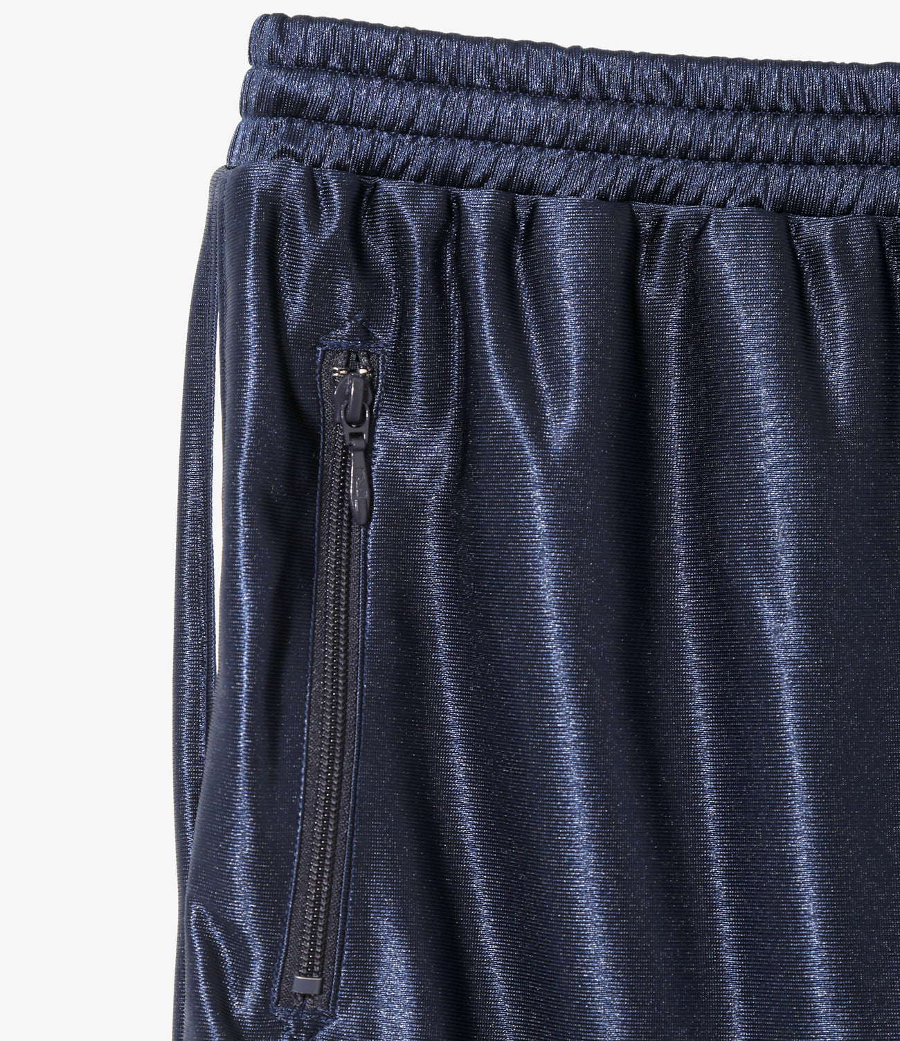 トリコット編みならではの柔らかさと適度な伸縮性に、サテン調のなめらかな光沢感をプラス。軽やかな着心地で動きやすいトラックパンツがリリースされました。サイドラインはなく、ニットマチを施した個性的なデザインは、動きやすさとデザイン性を兼ね備えた秀逸なディテールです。
