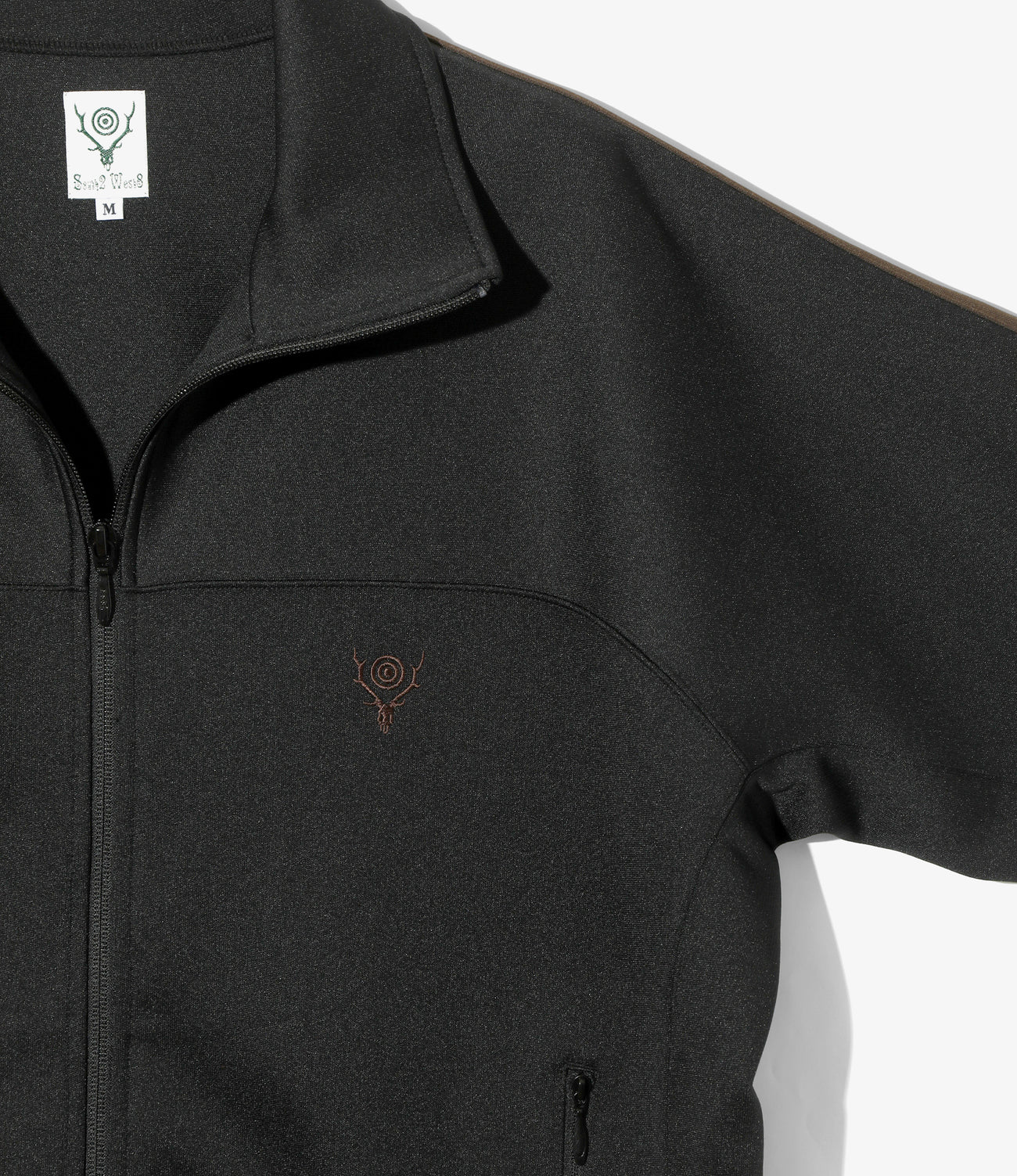 〈SOUTH2 WEST8〉定番アイテムのトレーナージャケット、25年秋冬シーズンの新色です。通気性・伸縮性に富んだポリエステルジャージー素材を使用し、タウンユースからアウトドアシーンまで活躍するアイテムです。胸元から袖までが一体になったユニークなパターンを採用し、サイドにはアクセントとなるラインテープが縫い付けられています。同素材でパンツも展開され、セットアップでもお楽しみ頂けます。