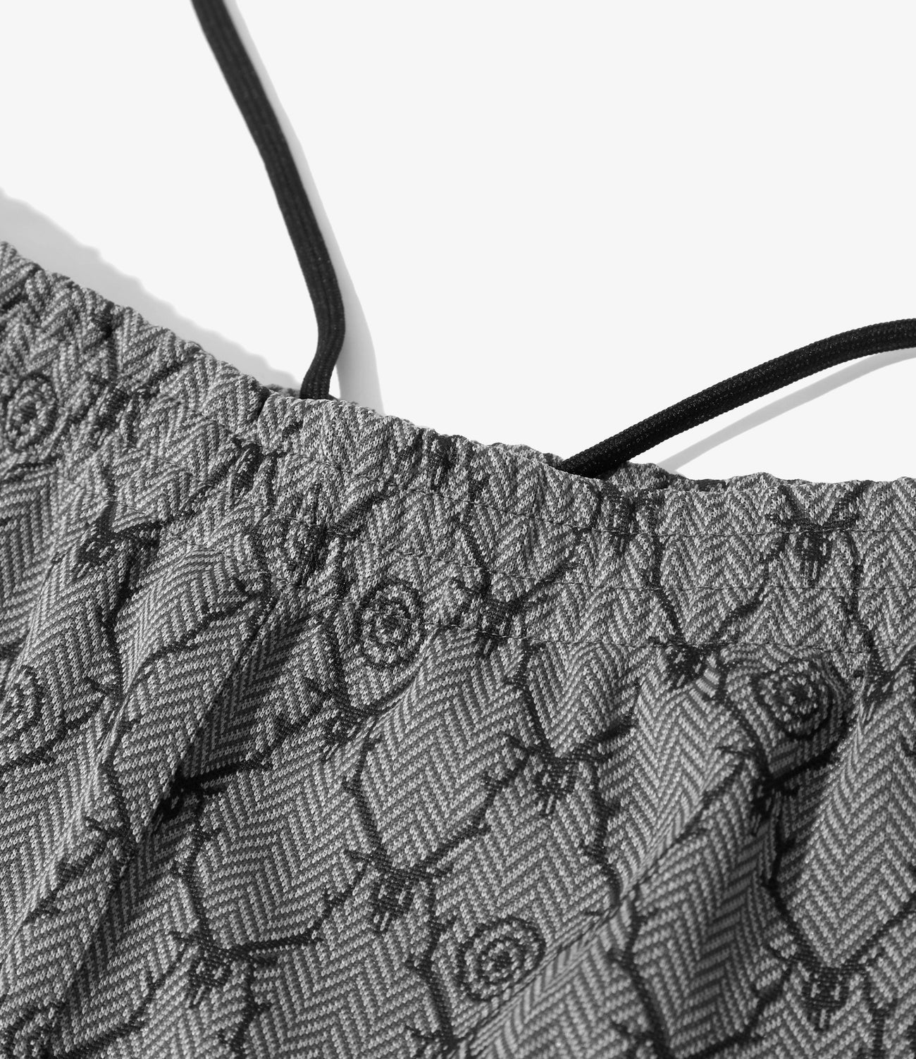 〈SOUTH2 WEST8〉のアイコンでもあるスカル&ターゲットがジャカード織の総柄で表現された、インパクト十分のトレーナーパンツ。通気性や伸縮性に富んだポリエステルジャージーを使用しており、快適な履き心地の良さも魅力です。ややゆとりのあるストレートシルエットで、バックウエストに備えたジップポケットも特徴的なデザインです。タウンユースから本格アウトドアまで幅広く活躍するアイテム。同素材でトレーナージャケットやVネックのプルオーバーシャツも展開され、セットアップでも着用が可能です。今季はグレイとブラウンの2色展開。